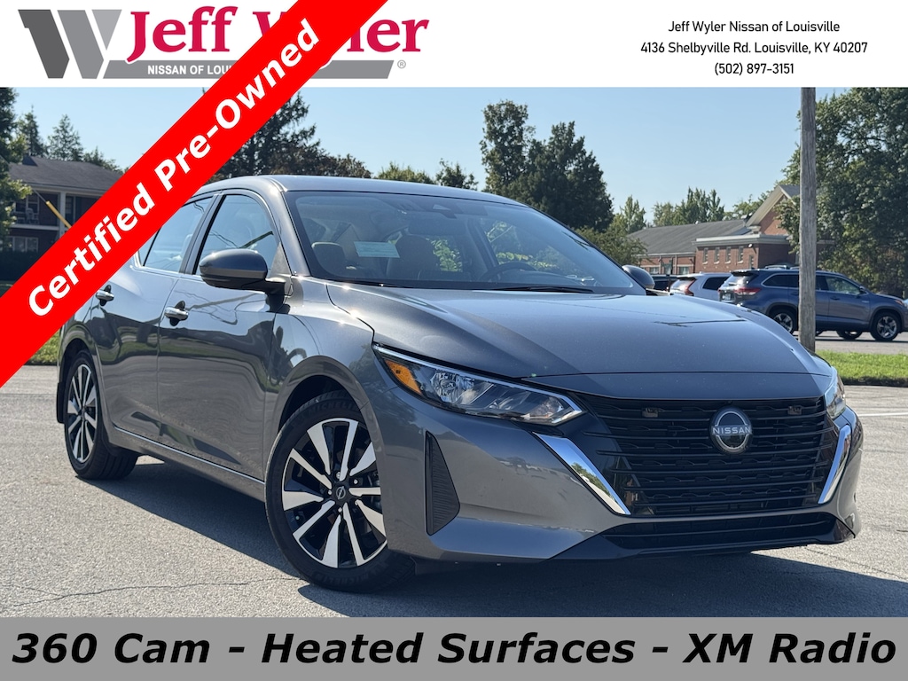 Jeff Wyler Nissan of Louisville is delighted to offer this fantastic-looking 2025 Nissan Sentra SV in Gun Metallic. ** BALANCE OF FACTORY WARRANTY **, ** NISSAN CERTIFIED PRE-OWNED **, ** ONE-OWNER CARFAX **, ** CLEAN CARFAX REPORT **, ** BLUETOOTH **, ** SUNROOF/MOONROOF **, ** BACKUP CAMERA **, ** LEATHER INTERIOR **, ** HEATED SEATS **, ** PUSH-BUTTON START **, ** SUPER LOW MILES **, ** GREAT FUEL ECONOMY **, ** PREVIOUS NISSAN COURTESY VEHICLE **, ** EXCELLENT SERVICE HISTORY **, ** LOCALLY OWNED **, and ** HOME DELIVERY OPTIONS! ** All-Weather Package (Dual Zone Auto Climate Control, Heated Exterior Mirrors, Heated Front Seats, Leather-Wrapped Heated Steering Wheel, and Remote Engine Start), SV Premium Package (17" Alloy Wheels, 6-Way Power Driver's Seat, Bose Premium Audio System w/8 Speakers, Intelligent Around View Monitor (I-AVM), Leather Shift Knob, Power Sliding Glass Moonroof w/Tilt Feature, Quilted Leather Seat Trim, Rear Armrest w/2 Cupholders, and Turn Signal Indicators On Exterior Mirrors), CVT with Xtronic, Sv Premium Leather, 16" Alloy Wheels, 4-Wheel Disc Brakes, 8 Speakers, ABS brakes, Air Conditioning, Alloy wheels, AM/FM radio: SiriusXM, Auto High-beam Headlights, Blind Spot Warning, Body Colored Splash Guards (4-Piece), Brake assist, Bumpers: body-color, Carpeted Floor Mats w/Trunk Mat, Clear Rear Bumper Protector, Dash Cam - Dual Camera Drive Recorder, Delay-off headlights, Door Sill Plates, Driver door bin, Driver vanity mirror, Dual front impact airbags, Dual front side impact airbags, Electronic Stability Control, Four wheel independent suspension, Front anti-roll bar, Front Bucket Seats, Front Center Armrest, Front reading lights, Fully automatic headlights, Illuminated entry, Knee airbag, Low tire pressure warning, Nissan USB Charging Cable Set, NissanConnect featuring Apple CarPlay and Android Auto, Occupant sensing airbag, Outside temperature display, Overhead airbag, Overhead console, Panic alarm, Passenger door bin, Passenger vanity mirror, Power door mirrors, Power steering, Power windows, Radio data system, Radio: AM/FM w/RDS/MP3/Aux-In, Rear anti-roll bar, Rear Parking Sensors, Rear side impact airbag, Rear window defroster, Remote keyless entry, Security system, Speed control, Speed-sensing steering, Split folding rear seat, Steering wheel mounted audio controls, Tachometer, Telescoping steering wheel, Tilt steering wheel, Traction control, Trip computer, Upgraded Cloth Seat Trim, and Variably intermittent wipers Our PRE-OWNED vehicles are put through a rigorous 167- POINT QUALITY ASSURANCE INSPECTION along with an average amount of over $1,400.00 SPENT to recondition each vehicle so we can be sure to deliver you the highest quality vehicle like you deserve! ***ONLINE PRICE DOES NOT INCLUDE WYLER FAMILY FIRST PACKAGE*** Stop by 4136 Shelbyville Road to see for yourself, or give us a call @ 502-897-3151 to schedule your test drive! ** BALANCE OF FACTORY WARRANTY **, ** NISSAN CERTIFIED PRE-OWNED **, ** ONE-OWNER CARFAX **, ** CLEAN CARFAX REPORT **, ** BLUETOOTH **, ** SUNROOF/MOONROOF **, ** BACKUP CAMERA **, ** LEATHER INTERIOR **, ** HEATED SEATS **, ** PUSH-BUTTON START **, ** SUPER LOW MILES **, ** GREAT FUEL ECONOMY **, ** PREVIOUS NISSAN COURTESY VEHICLE **, ** EXCELLENT SERVICE HISTORY **, ** LOCALLY OWNED **, CVT with Xtronic, Sv Premium Leather.