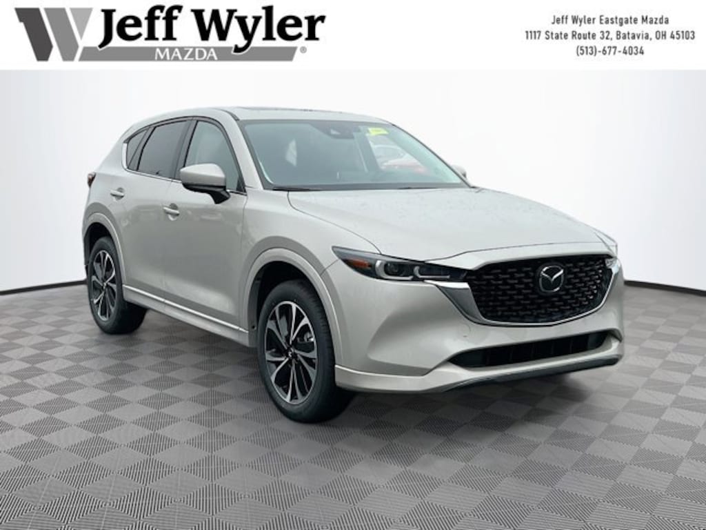 Priced below KBB Fair Purchase Price! Platinum Quartz Metallic 2025 Mazda CX-5 2.5 S Preferred Package SKYACTIV® 2.5L 4-Cylinder DOHC 16V AWD 6-Speed Automatic 26/30 City/Highway MPG Jeff Wyler Eastgate Auto Mall is honored to offer this great-looking 2025 Mazda CX-5 2.5 S Preferred Package in Platinum Quartz Metallic. Well equipped with: 4-Wheel Disc Brakes, 6 Speakers, ABS brakes, Air Conditioning, All-Weather Floor Mats, Alloy wheels, AM/FM radio, AppLink/Apple CarPlay and Android Auto, Auto High-beam Headlights, Auto-dimming Rear-View mirror, Automatic temperature control, Brake assist, Bumpers: body-color, Cargo Tray, Delay-off headlights, Driver door bin, Driver vanity mirror, Dual front impact airbags, Dual front side impact airbags, E911 Automatic Emergency Notification, Electronic Stability Control, Emergency communication system: MAZDA CONNECT, Exterior Parking Camera Rear, Four wheel independent suspension, Front anti-roll bar, Front Bucket Seats, Front Center Armrest w/Storage, Front dual zone A/C, Front reading lights, Fully automatic headlights, Garage door transmitter: HomeLink, Heated Front Bucket Seats, Heated front seats, Illuminated Doorsill Trim Plates, Illuminated entry, Infotainment System Voice Command, Leather Seat Trim, Leather Shift Knob, Leather steering wheel, Low tire pressure warning, Memory seat, Multifunction Commander Control, Occupant sensing airbag, Outside temperature display, Overhead airbag, Overhead console, Pandora, Panic alarm, Passenger door bin, Passenger vanity mirror, Power door mirrors, Power driver seat, Power Liftgate, Power moonroof, Power passenger seat, Power steering, Power windows, Radio Broadcast Data System Program Information, Radio data system, Radio: AM/FM/HD Audio System, Rain sensing wipers, Rear anti-roll bar, Rear reading lights, Rear seat center armrest, Rear window defroster, Rear window wiper, Remote keyless entry, SMS Text Msg Audio Delivery & Reply, Speed control, Speed-sensing steering, Split folding rear seat, Spoiler, Steering wheel mounted audio controls, Tachometer, Telescoping steering wheel, Tilt steering wheel, Traction control, Trip computer, Turn signal indicator mirrors, Variably intermittent wipers, and Wheels: 17 x 7J Aluminum Alloy. 26/30 City/Highway MPG Price includes: $2500 - Customer Cash. Exp. 03/02/2026
