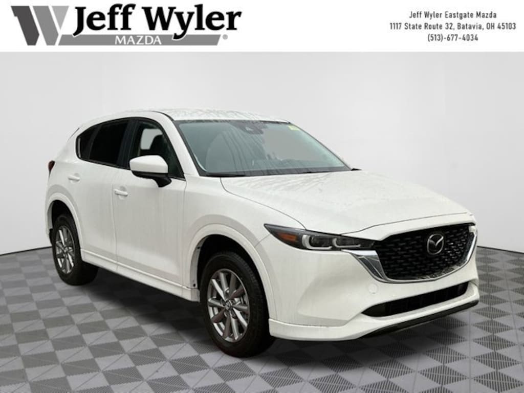 Priced below KBB Fair Purchase Price! Rhodium White Metallic 2025 Mazda CX-5 2.5 S Select Package SKYACTIV® 2.5L 4-Cylinder DOHC 16V AWD 6-Speed Automatic 23/29 City/Highway MPG Jeff Wyler Eastgate Auto Mall is excited to offer this gorgeous 2025 Mazda CX-5 2.5 S Select Package in Rhodium White Metallic. Well equipped with: 4-Wheel Disc Brakes, 6 Speakers, ABS brakes, Air Conditioning, Alloy wheels, AM/FM radio, AppLink/Apple CarPlay and Android Auto, Auto High-beam Headlights, Automatic temperature control, Brake assist, Bumpers: body-color, Cargo Net, Delay-off headlights, Driver door bin, Driver vanity mirror, Dual front impact airbags, Dual front side impact airbags, E911 Automatic Emergency Notification, Electronic Stability Control, Emergency communication system: MAZDA CONNECT, Exterior Parking Camera Rear, Four wheel independent suspension, Front anti-roll bar, Front Bucket Seats, Front Center Armrest w/Storage, Front dual zone A/C, Front reading lights, Fully automatic headlights, Heated Front Bucket Seats, Heated front seats, Illuminated entry, Infotainment System Voice Command, Leather Shift Knob, Leather steering wheel, Leatherette Seat Trim, Low tire pressure warning, Multifunction Commander Control, Occupant sensing airbag, Outside temperature display, Overhead airbag, Overhead console, Pandora, Panic alarm, Passenger door bin, Passenger vanity mirror, Power door mirrors, Power driver seat, Power steering, Power windows, Radio Broadcast Data System Program Information, Radio data system, Radio: AM/FM/HD Audio System, Rain sensing wipers, Rear anti-roll bar, Rear reading lights, Rear seat center armrest, Rear window defroster, Rear window wiper, Remote keyless entry, Retractable Cargo Cover, Rhodium White Metallic Paint, SMS Text Msg Audio Delivery & Reply, Speed control, Speed-sensing steering, Split folding rear seat, Spoiler, Steering wheel mounted audio controls, Tachometer, Telescoping steering wheel, Tilt steering wheel, Traction control, Trip computer, Turn signal indicator mirrors, Variably intermittent wipers, and Wheels: 17 x 7J Aluminum Alloy. 23/29 City/Highway MPG Price includes: $2000 - Customer Cash. Exp. 03/31/2026