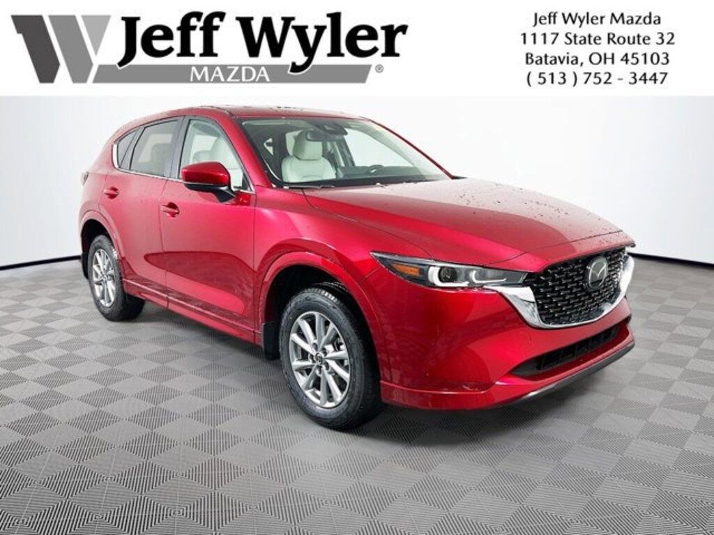 Soul Red Crystal Metallic 2025 Mazda CX-5 2.5 S Preferred Package SKYACTIV® 2.5L 4-Cylinder DOHC 16V AWD 6-Speed Automatic 26/30 City/Highway MPG Jeff Wyler Eastgate Auto Mall is pleased to offer this great 2025 Mazda CX-5 2.5 S Preferred Package in Soul Red Crystal Metallic. Well equipped with: 4-Wheel Disc Brakes, 6 Speakers, ABS brakes, Air Conditioning, Alloy wheels, AM/FM radio, AppLink/Apple CarPlay and Android Auto, Auto High-beam Headlights, Auto-dimming Rear-View mirror, Automatic temperature control, Brake assist, Bumpers: body-color, Delay-off headlights, Driver door bin, Driver vanity mirror, Dual front impact airbags, Dual front side impact airbags, E911 Automatic Emergency Notification, Electronic Stability Control, Emergency communication system: MAZDA CONNECT, Exterior Parking Camera Rear, Four wheel independent suspension, Front & Rear Splash Guards, Front anti-roll bar, Front Bucket Seats, Front Center Armrest w/Storage, Front dual zone A/C, Front reading lights, Fully automatic headlights, Garage door transmitter: HomeLink, Heated Front Bucket Seats, Heated front seats, Illuminated entry, Infotainment System Voice Command, Leather Seat Trim, Leather Shift Knob, Leather steering wheel, Low tire pressure warning, Memory seat, Multifunction Commander Control, Occupant sensing airbag, Outside temperature display, Overhead airbag, Overhead console, Pandora, Panic alarm, Passenger door bin, Passenger vanity mirror, Power door mirrors, Power driver seat, Power Liftgate, Power moonroof, Power passenger seat, Power steering, Power windows, Radio Broadcast Data System Program Information, Radio data system, Radio: AM/FM/HD Audio System, Rain sensing wipers, Rear anti-roll bar, Rear Bumper Guard, Rear reading lights, Rear seat center armrest, Rear window defroster, Rear window wiper, Remote keyless entry, SMS Text Msg Audio Delivery & Reply, Soul Red Crystal Metallic Paint, Speed control, Speed-sensing steering, Split folding rear seat, Spoiler, Steering wheel mounted audio controls, Tachometer, Telescoping steering wheel, Tilt steering wheel, Traction control, Trip computer, Turn signal indicator mirrors, Variably intermittent wipers, and Wheels: 17 x 7J Aluminum Alloy. 26/30 City/Highway MPG Price includes: $2000 - Customer Cash. Exp. 01/02/2026