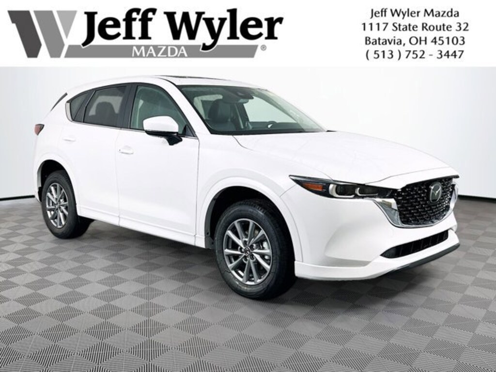 Rhodium White Metallic 2025 Mazda CX-5 2.5 S Preferred Package SKYACTIV® 2.5L 4-Cylinder DOHC 16V AWD 6-Speed Automatic 26/30 City/Highway MPG Jeff Wyler Eastgate Auto Mall is pleased to offer this wonderful 2025 Mazda CX-5 2.5 S Preferred Package in Rhodium White Metallic. Well equipped with: 4-Wheel Disc Brakes, 6 Speakers, ABS brakes, Air Conditioning, All-Weather Floor Mats, Alloy wheels, AM/FM radio, AppLink/Apple CarPlay and Android Auto, Auto High-beam Headlights, Auto-dimming Rear-View mirror, Automatic temperature control, Brake assist, Bumpers: body-color, Cargo Tray, Delay-off headlights, Driver door bin, Driver vanity mirror, Dual front impact airbags, Dual front side impact airbags, E911 Automatic Emergency Notification, Electronic Stability Control, Emergency communication system: MAZDA CONNECT, Exterior Parking Camera Rear, Four wheel independent suspension, Front anti-roll bar, Front Bucket Seats, Front Center Armrest w/Storage, Front dual zone A/C, Front reading lights, Fully automatic headlights, Garage door transmitter: HomeLink, Heated Front Bucket Seats, Heated front seats, Illuminated entry, Infotainment System Voice Command, Leather Seat Trim, Leather Shift Knob, Leather steering wheel, Low tire pressure warning, Memory seat, Multifunction Commander Control, Occupant sensing airbag, Outside temperature display, Overhead airbag, Overhead console, Pandora, Panic alarm, Passenger door bin, Passenger vanity mirror, Power door mirrors, Power driver seat, Power Liftgate, Power moonroof, Power passenger seat, Power steering, Power windows, Radio Broadcast Data System Program Information, Radio data system, Radio: AM/FM/HD Audio System, Rain sensing wipers, Rear anti-roll bar, Rear reading lights, Rear seat center armrest, Rear window defroster, Rear window wiper, Remote keyless entry, Retractable Cargo Cover, Rhodium White Metallic Paint, SMS Text Msg Audio Delivery & Reply, Speed control, Speed-sensing steering, Split folding rear seat, Spoiler, Steering wheel mounted audio controls, Tachometer, Telescoping steering wheel, Tilt steering wheel, Traction control, Trip computer, Turn signal indicator mirrors, Variably intermittent wipers, and Wheels: 17 x 7J Aluminum Alloy. 26/30 City/Highway MPG Price includes: $2000 - Customer Cash. Exp. 01/02/2026