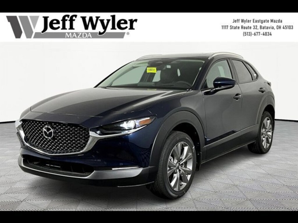 Priced below KBB Fair Purchase Price! Deep Crystal Blue Mica 2026 Mazda CX-30 2.5 S Premium SKYACTIV® 2.5L 4-Cylinder DOHC 16V AWD 6-Speed Automatic 24/31 City/Highway MPG Jeff Wyler Eastgate Auto Mall is excited to offer this charming 2026 Mazda CX-30 2.5 S Premium in Deep Crystal Blue Mica. Well equipped with: 12 Speakers, 4-Wheel Disc Brakes, ABS brakes, Air Conditioning, Alloy wheels, AM/FM radio, AppLink/Apple CarPlay and Android Auto, Auto High-beam Headlights, Auto-dimming Rear-View mirror, Automatic temperature control, Black Lug Nuts & Black Wheel Locks, Brake assist, Bumpers: body-color, Cargo Cover, Cargo Tray, Compass, Delay-off headlights, Driver door bin, Driver vanity mirror, Dual front impact airbags, Dual front side impact airbags, Electronic Stability Control, Emergency communication system: MAZDA CONNECT, Exterior Parking Camera Rear, Front & Rear Splash Guards, Front anti-roll bar, Front Bucket Seats, Front Center Armrest, Front dual zone A/C, Front reading lights, Front wheel independent suspension, Fully automatic headlights, Garage door transmitter: HomeLink, Heads-Up Display, Heated door mirrors, Heated Front Bucket Seats, Heated front seats, Heated steering wheel, High Wall All-Weather Floor Mats, Illuminated entry, Knee airbag, Leather Seat Trim, Leather Shift Knob, Leather steering wheel, Low tire pressure warning, MAZDA CONNECT Infotainment System, Memory seat, Occupant sensing airbag, Outside temperature display, Overhead airbag, Overhead console, Panic alarm, Passenger door bin, Passenger vanity mirror, Power door mirrors, Power driver seat, Power Liftgate, Power moonroof, Power steering, Power windows, Radio data system, Radio: AM/FM/HD Audio System, Rain sensing wipers, Rear seat center armrest, Rear side impact airbag, Rear window defroster, Rear window wiper, Remote keyless entry, Speed control, Speed-sensing steering, Split folding rear seat, Spoiler, Steering wheel mounted audio controls, Tachometer, Telescoping steering wheel, Tilt steering wheel, Traction control, Trip computer, Turn signal indicator mirrors, Variably intermittent wipers, and Wheels: 18 x 7J Aluminum Alloy. 24/31 City/Highway MPG Price includes: $2000 - Customer Cash. Exp. 04/30/2026