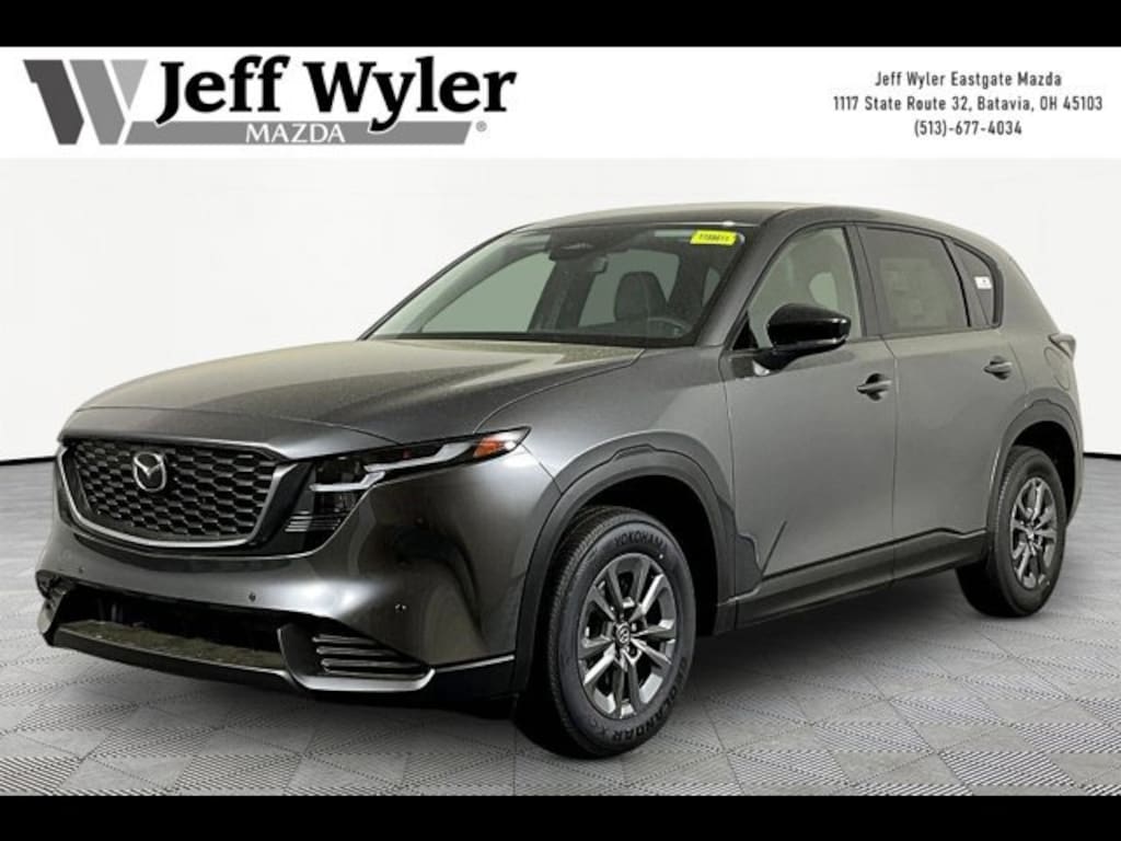 Machine Gray Metallic 2026 Mazda CX-5 2.5 S Select SKYACTIV®-G 2.5L 4-Cylinder DOHC 16V AWD 6-Speed Automatic Jeff Wyler Eastgate Auto Mall is very proud to offer this fantastic-looking 2026 Mazda CX-5 2.5 S Select in Machine Gray Metallic. Well equipped with: 4-Wheel Disc Brakes, 8 Speakers, ABS brakes, Air Conditioning, Alloy wheels, AM/FM radio, AppLink/Apple CarPlay and Android Auto, Auto High-beam Headlights, Auto-dimming Rear-View mirror, Automatic temperature control, Brake assist, Bumpers: body-color, Compass, Delay-off headlights, Driver door bin, Driver vanity mirror, Dual front impact airbags, Dual front side impact airbags, Electronic Stability Control, Emergency communication system: 911 Emergency Notification, Exterior Parking Camera Rear, Four wheel independent suspension, Front anti-roll bar, Front Bucket Seats, Front Center Armrest w/Storage, Front dual zone A/C, Front reading lights, Fully automatic headlights, Heated door mirrors, Illuminated entry, Knee airbag, Leather Shift Knob, Leather steering wheel, Leatherette Seat Trim with Microsuede Insert, Low tire pressure warning, Machine Gray Metallic Paint Charge, Navigation system: Google built-in, Occupant sensing airbag, Outside temperature display, Overhead airbag, Overhead console, Panic alarm, Passenger door bin, Passenger vanity mirror, Power door mirrors, Power steering, Power windows, Radio data system, Radio: AM/FM/HD Audio System, Rain sensing wipers, Rear anti-roll bar, Rear reading lights, Rear seat center armrest, Rear window defroster, Rear window wiper, Remote keyless entry, Speed control, Speed-sensing steering, Split folding rear seat, Spoiler, Steering wheel mounted audio controls, Tachometer, Telescoping steering wheel, Tilt steering wheel, Traction control, Trip computer, Turn signal indicator mirrors, Variably intermittent wipers, Wheel Locks, and Wheels: 17 x 7J Aluminum Alloy.