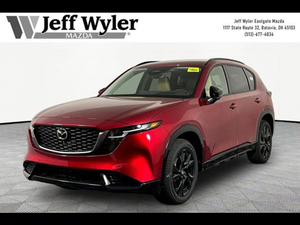 Soul Red Crystal Metallic 2026 Mazda CX-5 2.5 S Premium Plus SKYACTIV®-G 2.5L 4-Cylinder DOHC 16V AWD 6-Speed Automatic Jeff Wyler Eastgate Auto Mall is very proud to offer this fantastic-looking 2026 Mazda CX-5 2.5 S Premium Plus in Soul Red Crystal Metallic. Well equipped with: 12 Speakers, 4-Wheel Disc Brakes, ABS brakes, Air Conditioning, Alloy wheels, AM/FM radio: SiriusXM 360L, AppLink/Apple CarPlay and Android Auto, Auto High-beam Headlights, Auto-dimming Rear-View mirror, Automatic temperature control, Brake assist, Bumpers: body-color, Cargo Tray, Compass, Delay-off headlights, Driver door bin, Driver vanity mirror, Dual front impact airbags, Dual front side impact airbags, Electronic Stability Control, Emergency communication system: 911 Emergency Notification, Four wheel independent suspension, Front anti-roll bar, Front Bucket Seats, Front Center Armrest w/Storage, Front dual zone A/C, Front reading lights, Fully automatic headlights, Garage door transmitter: HomeLink, Heads-Up Display, Heated and Ventilated Front Bucket Seats, Heated door mirrors, Heated front seats, Heated rear seats, Heated steering wheel, Illuminated entry, Knee airbag, Leather Seat Trim, Leather Shift Knob, Leather steering wheel, Low tire pressure warning, Memory seat, Navigation system: Google built-in, Occupant sensing airbag, Outside temperature display, Overhead airbag, Overhead console, Panic alarm, Passenger door bin, Passenger vanity mirror, Power door mirrors, Power driver seat, Power Liftgate, Power moonroof, Power passenger seat, Power steering, Power windows, Radio data system, Radio: AM/FM/HD Audio System, Rain sensing wipers, Rear anti-roll bar, Rear reading lights, Rear seat center armrest, Rear window defroster, Rear window wiper, Remote keyless entry, SiriusXM 3 Year Traffic and Travel Link Subscription, Soul Red Crystal Metallic Paint Charge, Speed control, Speed-sensing steering, Split folding rear seat, Spoiler, Steering wheel mounted audio controls, Tachometer, Telescoping steering wheel, Tilt steering wheel, Traction control, Trip computer, Turn signal indicator mirrors, Variably intermittent wipers, Ventilated front seats, and Wheels: 19 x 7J Aluminum Alloy.