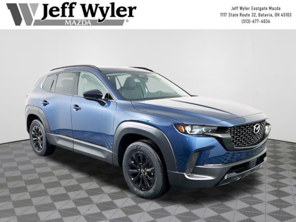 Priced below KBB Fair Purchase Price! Ingot Blue Metallic 2026 Mazda CX-50 Hybrid Premium 2.5L 4-Cylinder AWD Continuously Variable (ECVT) 39/37 City/Highway MPG Jeff Wyler Eastgate Auto Mall is delighted to offer this wonderful 2026 Mazda CX-50 Hybrid Premium in Ingot Blue Metallic. Well equipped with: Weather Package (Cargo Liner w/Seatback Protection), 12 Speakers, 4-Wheel Disc Brakes, ABS brakes, Air Conditioning, Alloy wheels, AM/FM radio: SiriusXM, AppLink/Apple CarPlay and Android Auto, Auto High-beam Headlights, Auto-dimming Rear-View mirror, Automatic temperature control, Brake assist, Bumpers: body-color, Delay-off headlights, Driver door bin, Driver vanity mirror, Dual front impact airbags, Dual front side impact airbags, Electronic Stability Control, Emergency communication system: MAZDA CONNECT, Exterior Parking Camera Rear, Front anti-roll bar, Front Bucket Seats, Front Center Armrest, Front dual zone A/C, Front reading lights, Front wheel independent suspension, Fully automatic headlights, Heated door mirrors, Heated front seats, Heated/Ventilated Front Seats w/3 Level Adjustment, Illuminated entry, Knee airbag, Leather Seat Trim, Leather Shift Knob, Leather steering wheel, Low tire pressure warning, Memory seat, Occupant sensing airbag, Outside temperature display, Overhead airbag, Overhead console, Panic alarm, Passenger door bin, Passenger vanity mirror, Power door mirrors, Power driver seat, Power Liftgate, Power moonroof, Power passenger seat, Power steering, Power windows, Radio data system, Radio: AM/FM/HD Bose 12-Speaker Audio Sound System, Rain sensing wipers, Rear seat center armrest, Rear window defroster, Rear window wiper, Remote keyless entry, Speed control, Speed-sensing steering, Split folding rear seat, Spoiler, Steering wheel mounted audio controls, Tachometer, Telescoping steering wheel, Tilt steering wheel, Traction control, Trip computer, Turn signal indicator mirrors, Variably intermittent wipers, Ventilated front seats, and Wheels: 17 x 7J Aluminum Alloy Black Metallic Finish. 39/37 City/Highway MPG Price includes: $2500 - Customer Cash. Exp. 03/31/2026