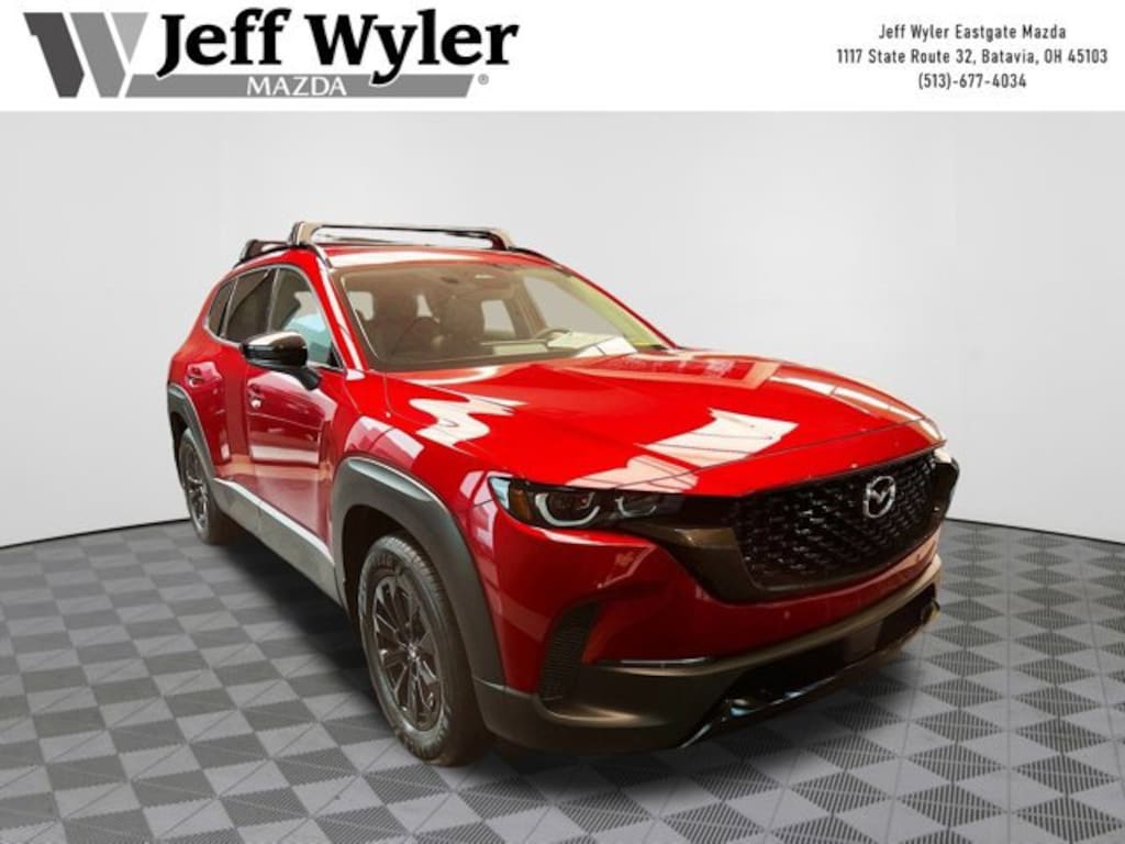 Priced below KBB Fair Purchase Price! Soul Red Crystal Metallic 2026 Mazda CX-50 Hybrid Premium 2.5L 4-Cylinder AWD CVT 39/37 City/Highway MPG Jeff Wyler Eastgate Auto Mall is honored to offer this wonderful-looking 2026 Mazda CX-50 Hybrid Premium in Soul Red Crystal Metallic. Well equipped with: Cargo Package (Cargo Blocks), 12 Speakers, 4-Wheel Disc Brakes, ABS brakes, Air Conditioning, Alloy wheels, AM/FM radio: SiriusXM, AppLink/Apple CarPlay and Android Auto, Auto High-beam Headlights, Auto-dimming Rear-View mirror, Automatic temperature control, Brake assist, Bumpers: body-color, Delay-off headlights, Driver door bin, Driver vanity mirror, Dual front impact airbags, Dual front side impact airbags, Electronic Stability Control, Emergency communication system: MAZDA CONNECT, Exterior Parking Camera Rear, Front & Rear Splash Guards, Front anti-roll bar, Front Bucket Seats, Front Center Armrest, Front dual zone A/C, Front reading lights, Front wheel independent suspension, Fully automatic headlights, Heated door mirrors, Heated front seats, Heated/Ventilated Front Seats w/3 Level Adjustment, Illuminated entry, Knee airbag, Leather Seat Trim, Leather Shift Knob, Leather steering wheel, Life Style Mount, Low tire pressure warning, Memory seat, Occupant sensing airbag, Outside temperature display, Overhead airbag, Overhead console, Panic alarm, Passenger door bin, Passenger vanity mirror, Power door mirrors, Power driver seat, Power Liftgate, Power moonroof, Power passenger seat, Power steering, Power windows, Radio data system, Radio: AM/FM/HD Bose 12-Speaker Audio Sound System, Rain sensing wipers, Rear seat center armrest, Rear window defroster, Rear window wiper, Remote keyless entry, Soul Red Crystal Metallic Paint Charge, Speed control, Speed-sensing steering, Split folding rear seat, Spoiler, Steering wheel mounted audio controls, Tachometer, Telescoping steering wheel, Tilt steering wheel, Traction control, Trip computer, Turn signal indicator mirrors, Variably intermittent wipers, Ventilated front seats, and Wheels: 17 x 7J Aluminum Alloy Black Metallic Finish. 39/37 City/Highway MPG Price includes: $2500 - Customer Cash. Exp. 03/31/2026