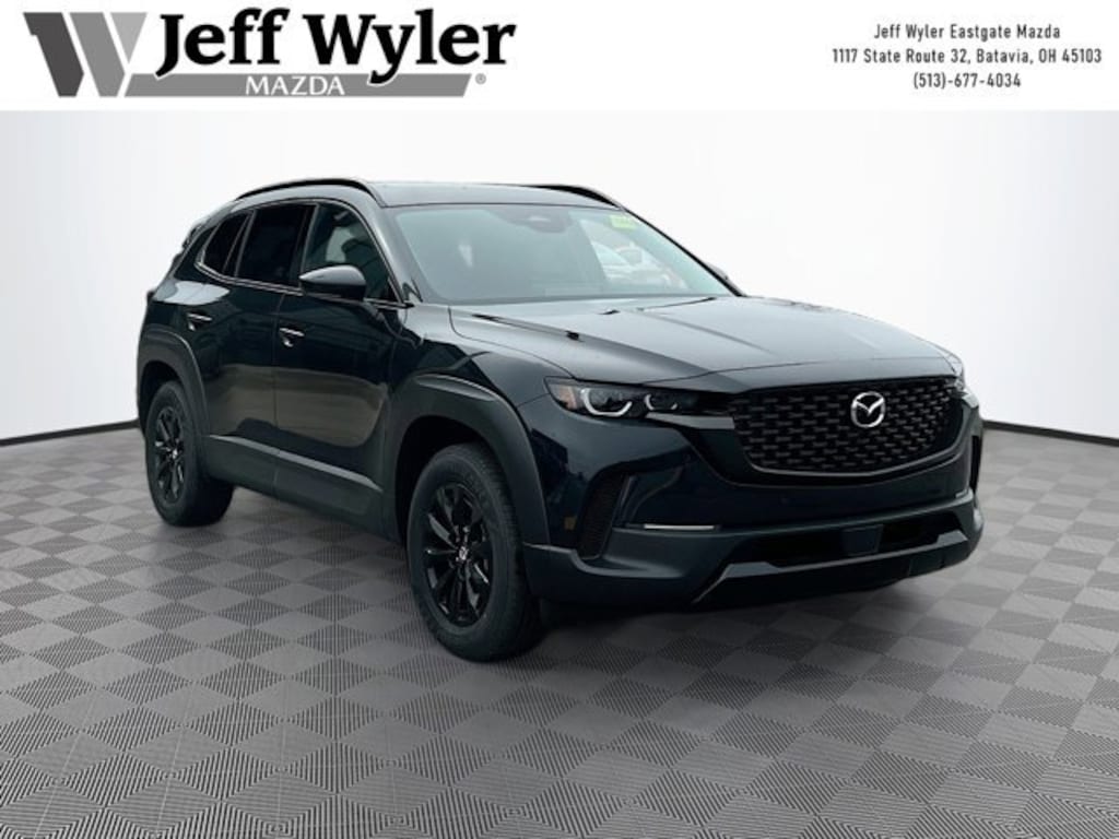Priced below KBB Fair Purchase Price! jet black mica 2026 Mazda CX-50 Hybrid Premium 2.5L 4-Cylinder AWD CVT 39/37 City/Highway MPG Jeff Wyler Eastgate Auto Mall is delighted to offer this gorgeous-looking 2026 Mazda CX-50 Hybrid Premium in jet black mica. Well equipped with: Weather Package, 12 Speakers, 4-Wheel Disc Brakes, ABS brakes, Air Conditioning, Alloy wheels, AM/FM radio: SiriusXM, AppLink/Apple CarPlay and Android Auto, Auto High-beam Headlights, Auto-dimming Rear-View mirror, Automatic temperature control, Brake assist, Bumpers: body-color, Delay-off headlights, Driver door bin, Driver vanity mirror, Dual front impact airbags, Dual front side impact airbags, Electronic Stability Control, Emergency communication system: MAZDA CONNECT, Exterior Parking Camera Rear, Front anti-roll bar, Front Bucket Seats, Front Center Armrest, Front dual zone A/C, Front reading lights, Front wheel independent suspension, Fully automatic headlights, Heated and Ventilated Front Seats with 3 Level Adjustment, Heated door mirrors, Heated front seats, Illuminated entry, Knee airbag, Leather Seat Trim, Leather Shift Knob, Leather steering wheel, Low tire pressure warning, Memory seat, Occupant sensing airbag, Outside temperature display, Overhead airbag, Overhead console, Panic alarm, Passenger door bin, Passenger vanity mirror, Power door mirrors, Power driver seat, Power Liftgate, Power moonroof, Power passenger seat, Power steering, Power windows, Radio data system, Radio: AM/FM/HD Bose 12-Speaker Audio Sound System, Rain sensing wipers, Rear seat center armrest, Rear window defroster, Rear window wiper, Remote keyless entry, Speed control, Speed-sensing steering, Split folding rear seat, Spoiler, Steering wheel mounted audio controls, Tachometer, Telescoping steering wheel, Tilt steering wheel, Traction control, Trip computer, Turn signal indicator mirrors, Variably intermittent wipers, Ventilated front seats, and Wheels: 17 x 7J Aluminum Alloy Black Metallic Finish. 39/37 City/Highway MPG Price includes: $2500 - Customer Cash. Exp. 03/02/2026