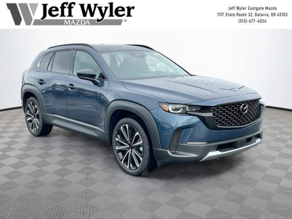 Priced below KBB Fair Purchase Price! Ingot Blue Metallic 2026 Mazda CX-50 2.5 Turbo Premium Plus 2.5L I4 Turbocharged DOHC 16V LEV3-ULEV70 227hp AWD 6-Speed Automatic 23/29 City/Highway MPG Jeff Wyler Eastgate Auto Mall is excited to offer this fantastic-looking 2026 Mazda CX-50 2.5 Turbo Premium Plus in Ingot Blue Metallic. Well equipped with: 12 Speakers, 4-Wheel Disc Brakes, ABS brakes, Air Conditioning, Alloy wheels, AM/FM radio: SiriusXM, AppLink/Apple CarPlay and Android Auto, Auto High-beam Headlights, Auto-dimming door mirrors, Auto-dimming Rear-View mirror, Automatic temperature control, Black Lug Nuts and Black Wheel Locks, Brake assist, Bumpers: body-color, Compass, Delay-off headlights, Driver door bin, Driver vanity mirror, Dual front impact airbags, Dual front side impact airbags, Electronic Stability Control, Emergency communication system: MAZDA CONNECT, Front anti-roll bar, Front Bucket Seats, Front Center Armrest, Front dual zone A/C, Front reading lights, Front wheel independent suspension, Fully automatic headlights, Garage door transmitter: HomeLink, Heads-Up Display, Heated and Ventilated Front Seats with 3 Level Adjustment, Heated door mirrors, Heated front seats, Heated rear seats, Heated steering wheel, Illuminated entry, Knee airbag, Leather Seat Trim, Leather Shift Knob, Leather steering wheel, Low tire pressure warning, Memory seat, Navigation system: MAZDA CONNECT, Occupant sensing airbag, Outside temperature display, Overhead airbag, Overhead console, Panic alarm, Passenger door bin, Passenger vanity mirror, Power door mirrors, Power driver seat, Power Liftgate, Power moonroof, Power passenger seat, Power steering, Power windows, Radio data system, Radio: AM/FM/HD Bose 12-Speaker Audio Sound System and Navigation, Rain sensing wipers, Rear seat center armrest, Rear window defroster, Rear window wiper, Remote keyless entry, Speed control, Speed-sensing steering, Split folding rear seat, Spoiler, Steering wheel mounted audio controls, Tachometer, Telescoping steering wheel, Tilt steering wheel, Traction control, Trailer Hitch with 7-Pin Harness, Trip computer, Turn signal indicator mirrors, Variably intermittent wipers, Ventilated front seats, and Wheels: 20 x 8J Aluminum Alloy Black Metallic with Machining Cut. 23/29 City/Highway MPG Price includes: $1500 - Customer Cash. Exp. 03/31/2026