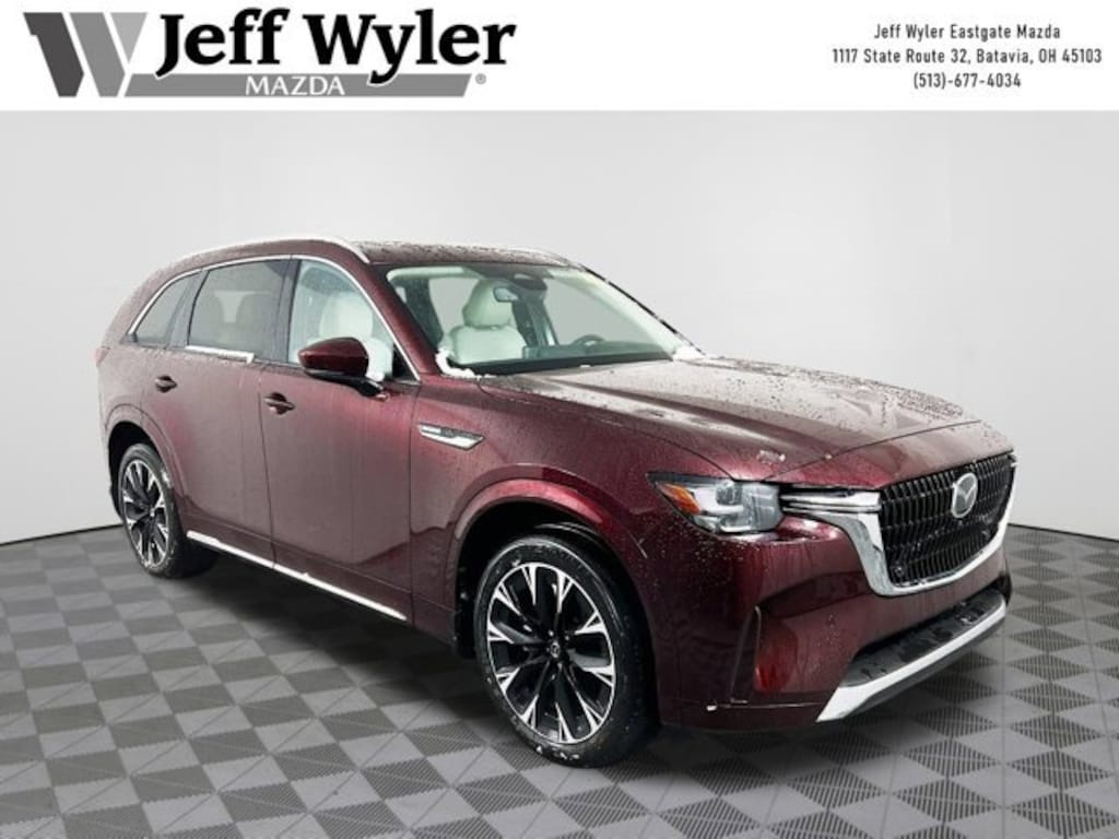 Priced below KBB Fair Purchase Price! Artisan Red Premium 2026 Mazda CX-90 3.3 Turbo S Premium Plus I6 Turbo AWD 8-Speed Automatic 23/28 City/Highway MPG Jeff Wyler Eastgate Auto Mall is excited to offer this outstanding 2026 Mazda CX-90 3.3 Turbo S Premium Plus in Artisan Red Premium. Well equipped with: 12 Speakers, 3rd row seats: bench, 4-Wheel Disc Brakes, ABS brakes, Air Conditioning, Alloy wheels, AM/FM radio: SiriusXM, Artisan Red Premium Paint Charge, Auto High-beam Headlights, Auto-dimming door mirrors, Auto-dimming Rear-View mirror, Automatic temperature control, Brake assist, Bumpers: body-color, Compass, Delay-off headlights, Driver door bin, Driver vanity mirror, Dual front impact airbags, Dual front side impact airbags, E911 Automatic Emergency Notification, Electronic Stability Control, Emergency communication system: MAZDA CONNECT, Four wheel independent suspension, Front anti-roll bar, Front Bucket Seats, Front Center Armrest w/Storage, Front dual zone A/C, Front reading lights, Fully automatic headlights, Garage door transmitter: HomeLink, Heads-Up Display, Heated door mirrors, Heated front seats, Heated rear seats, Heated steering wheel, Heated/Ventilated Front Bucket Seats, Illuminated entry, Infotainment System Voice Command, Knee airbag, Leather Shift Knob, Leather steering wheel, Low tire pressure warning, Mazda Connected Services, Mazda Online Navigation, Memory seat, Nappa Leather Seat Trim, Navigation system: MAZDA CONNECT, Occupant sensing airbag, Outside temperature display, Overhead airbag, Overhead console, Panic alarm, Passenger door bin, Passenger vanity mirror, Power door mirrors, Power driver seat, Power Liftgate, Power moonroof, Power passenger seat, Power steering, Power windows, Radio Broadcast Data System Program Information, Radio data system, Radio: : AM/FM w/HD/Bose 12-Speaker Sound System, Rain sensing wipers, Rear air conditioning, Rear anti-roll bar, Rear reading lights, Rear seat center armrest, Rear window defroster, Rear window wiper, Remote keyless entry, Security system, SMS Text Msg Audio Delivery and Reply, Speed control, Speed-sensing steering, Splash Guards, Split folding rear seat, Spoiler, Steering wheel memory, Steering wheel mounted audio controls, Tachometer, Telescoping steering wheel, Tilt steering wheel, Traction control, Trip computer, Turn signal indicator mirrors, Variably intermittent wipers, Ventilated front seats, Ventilated rear seats, Wheel Locks, and Wheels: 21 x 9.5j Machine Cut Aluminum Alloy. 23/28 City/Highway MPG Price includes: $2000 - Customer Cash. Exp. 04/30/2026