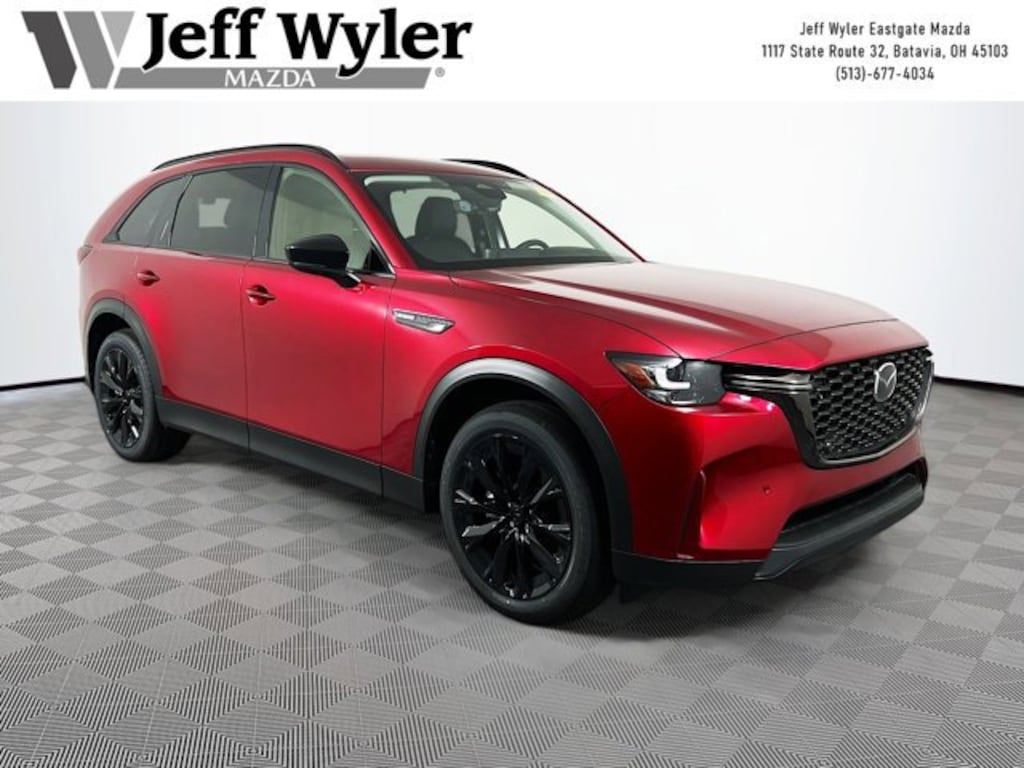 Soul Red Crystal Metallic 2026 Mazda CX-90 3.3 Turbo Premium I6 AWD 8-Speed Automatic 23/28 City/Highway MPG Jeff Wyler Eastgate Auto Mall is delighted to offer this great-looking 2026 Mazda CX-90 3.3 Turbo Premium in Soul Red Crystal Metallic. Well equipped with: 12 Speakers, 2nd-Row Captain's Chairs, 3rd row seats: bench, 4-Wheel Disc Brakes, ABS brakes, Air Conditioning, Alloy wheels, AM/FM radio: SiriusXM, Auto High-beam Headlights, Auto-dimming door mirrors, Auto-dimming Rear-View mirror, Automatic temperature control, Brake assist, Bumpers: body-color, Compass, Delay-off headlights, Digital Rearview Mirror with HomeLink, Driver door bin, Driver vanity mirror, Dual front impact airbags, Dual front side impact airbags, E911 Automatic Emergency Notification, Electronic Stability Control, Emergency communication system: MAZDA CONNECT, Exterior Parking Camera Rear, Four wheel independent suspension, Front anti-roll bar, Front Bucket Seats, Front Center Armrest w/Storage, Front dual zone A/C, Front reading lights, Fully automatic headlights, Garage door transmitter: HomeLink, Heads-Up Display, Heated door mirrors, Heated front seats, Heated rear seats, Heated steering wheel, Heated/Ventilated Front Bucket Seats, Illuminated entry, Infotainment System Voice Command, Knee airbag, Leather Seat Trim, Leather Shift Knob, Leather steering wheel, Low tire pressure warning, Mazda Connected Services, Mazda Online Navigation, Memory seat, Navigation system: MAZDA CONNECT, Occupant sensing airbag, Outside temperature display, Overhead airbag, Overhead console, Panic alarm, Passenger door bin, Passenger vanity mirror, Power door mirrors, Power driver seat, Power Liftgate, Power moonroof, Power passenger seat, Power steering, Power windows, Radio Broadcast Data System Program Information, Radio data system, Radio: : AM/FM w/HD/Bose 12-Speaker Sound System, Rain sensing wipers, Rear air conditioning, Rear anti-roll bar, Rear reading lights, Rear seat center armrest, Rear window defroster, Rear window wiper, Remote keyless entry, SMS Text Msg Audio Delivery and Reply, Soul Red Crystal Metallic Paint Charge, Speed control, Speed-sensing steering, Split folding rear seat, Spoiler, Steering wheel mounted audio controls, Tachometer, Telescoping steering wheel, Tilt steering wheel, Traction control, Trip computer, Turn signal indicator mirrors, Variably intermittent wipers, Ventilated front seats, and Wheels: 21 x 9.5J Aluminum Alloy with Black Metal Finish. 23/28 City/Highway MPG Price includes: $2000 - Customer Cash. Exp. 03/31/2026