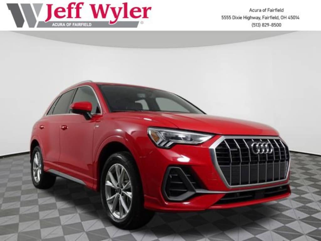Jeff Wyler Acura of Fairfield is excited to offer this attractive-looking 2024 Audi Q3 Premium in Red. 10 Speakers, 3.53 Axle Ratio, 4-Wheel Disc Brakes, ABS brakes, Air Conditioning, Alloy wheels, AM/FM radio, Audi smartphone interface (Apple CarPlay/Android Auto), Auto High-beam Headlights, Automatic temperature control, Brake assist, Bumpers: body-color, Delay-off headlights, Driver door bin, Driver vanity mirror, Dual front impact airbags, Dual front side impact airbags, Electronic Stability Control, Emergency communication system: Audi connect CARE, Exterior Parking Camera Rear, Four wheel independent suspension, Front anti-roll bar, Front Bucket Seats, Front Center Armrest, Front dual zone A/C, Front fog lights, Front reading lights, Fully automatic headlights, Heated door mirrors, Heated Front Bucket Seats, Heated front seats, Illuminated entry, Knee airbag, Leather Seating Surfaces, Leather Shift Knob, Leather steering wheel, Low tire pressure warning, Occupant sensing airbag, Outside temperature display, Overhead airbag, Overhead console, Panic alarm, Passenger door bin, Passenger vanity mirror, Power door mirrors, Power driver seat, Power Liftgate, Power moonroof: Panoramic, Power passenger seat, Power steering, Power windows, Radio data system, Radio: Audi Sound System, Rain sensing wipers, Rear air conditioning, Rear anti-roll bar, Rear fog lights, Rear reading lights, Rear seat center armrest, Rear window defroster, Rear window wiper, Remote keyless entry, Speed control, Speed-sensing steering, Split folding rear seat, Spoiler, Steering wheel mounted audio controls, Tachometer, Telescoping steering wheel, Tilt steering wheel, Traction control, Trip computer, Turn signal indicator mirrors, Variably intermittent wipers, and Wheels: 18" 5-V-Spoke-S Design ***ONLINE PRICE DOES NOT INCLUDE WYLER FAMILY FIRST PACKAGE*** CARFAX One-Owner. Clean CARFAX.Proudly Serving: Cincinnati, Dayton, Columbus, Louisville, Lexington, Indianapolis, Hamilton, Florence, Alexandria, Beavercreek, Springdale, West Chester, Monroe, Fairfield, Kenwood, Newport and all of greater Cincinnati Ohio, Indiana, and Northern Kentucky.
