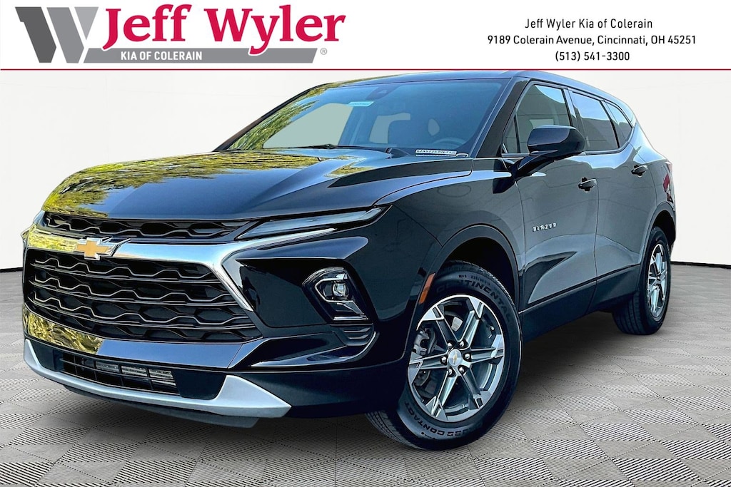 Jeff Wyler Kia of Colerain is very proud to offer this good-looking 2024 Chevrolet Blazer LT in Black. Floor Liner Package (LPO) (1st & 2nd Row All-Weather Floor Liners (LPO) and Integrated Cargo Liner (LPO)), Preferred Equipment Group 2LT, Trailering Equipment (Hitch Guidance), 170 Amp Alternator, 3.47 Final Drive Axle Ratio, 4-Way Manual Front Passenger Seat Adjuster, 4-Wheel Disc Brakes, 6 Speakers, 6-Speaker Audio System Feature, 8-Way Power Driver Seat Adjuster, ABS brakes, Air Conditioning, Alloy wheels, AM/FM radio: SiriusXM with 360L, Apple CarPlay/Android Auto, Auto High-beam Headlights, Automatic temperature control, Brake assist, Bumpers: body-color, Child-Seat-Sensing Airbag, Compass, Delay-off headlights, Driver door bin, Driver vanity mirror, Dual front impact airbags, Dual front side impact airbags, Electronic Stability Control, Emergency communication system: OnStar and Chevrolet connected services capable, Four wheel independent suspension, Front anti-roll bar, Front Bucket Seats, Front Center Armrest, Front dual zone A/C, Front reading lights, Fully automatic headlights, Heated door mirrors, Heated Driver & Front Passenger Seats, Heated front seats, Illuminated entry, Knee airbag, Leather Shift Knob, Low tire pressure warning, Occupant sensing airbag, Outside temperature display, Overhead airbag, Overhead console, Panic alarm, Passenger door bin, Passenger vanity mirror, Power door mirrors, Power Driver Lumbar Control, Power driver seat, Power steering, Power windows, Premium audio system: Chevrolet Infotainment 3 Plus, Premium Cloth Seat Trim, Radio data system, Radio: Chevrolet Infotainment 3 Plus System, Rear anti-roll bar, Rear reading lights, Rear seat center armrest, Rear window defroster, Rear window wiper, Remote keyless entry, Ride & Handling Suspension, Security system, SiriusXM w/360L, Speed control, Speed-sensing steering, Split folding rear seat, Spoiler, Steering wheel mounted audio controls, Tachometer, Telescoping steering wheel, Tilt steering wheel, Traction control, Trip computer, Variably intermittent wipers, Voltmeter, and Wheels: 18" Grazen Metallic Aluminum Our PRE-OWNED vehicles are put through a rigorous 167- POINT QUALITY ASSURANCE INSPECTION along with an average amount of over $1,400.00 SPENT to recondition each vehicle so we can be sure to deliver you the highest quality vehicle like you deserve! ***ONLINE PRICE DOES NOT INCLUDE WYLER FAMILY FIRST PACKAGE***