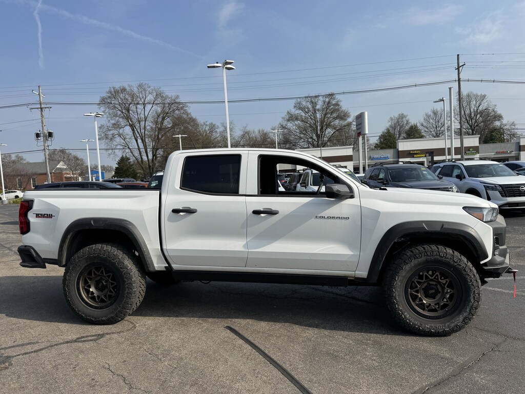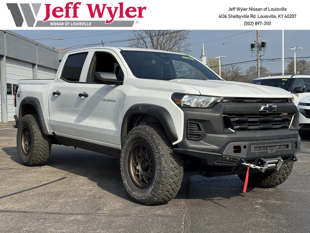 Jeff Wyler Nissan of Louisville is proud to offer this good-looking 2025 Chevrolet Colorado Trail Boss in Summit White. ** CLEAN CARFAX REPORT **, ** BLUETOOTH **, ** BACKUP CAMERA **, ** PUSH-BUTTON START **, ** GREAT FUEL ECONOMY **, ** EXCELLENT SERVICE HISTORY **, ** LOCALLY OWNED **, MAUFACTOR COMPLIANT LIFT KIT, WINCH, CUSTOM 20" OFF ROAD WHEELS AND TIRES, and ** HOME DELIVERY OPTIONS! ** Preferred Equipment Group 0TR (Automatic Emergency Braking, Chevy Safety Assist, Following Distance Indicator, Forward Collision Alert, Front Pedestrian & Bicyclist Braking, IntelliBeam Automatic High Beam On/Off, and Lane Keep Assist w/Lane Departure Warning), 4WD, 3.42 Rear Axle Ratio, 4-Way Manual Passenger Seat Adjuster, 4-Wheel Disc Brakes, 6 Speakers, 6-Speaker Audio System Feature, 6-Way Manual Driver Seat Adjuster, ABS brakes, Air Conditioning, Alloy wheels, AM/FM radio: SiriusXM, Apple CarPlay/Android Auto, Auto High-beam Headlights, Automatic temperature control, Brake assist, Cloth Seat Trim, Compass, Delay-off headlights, Driver door bin, Driver vanity mirror, Dual front impact airbags, Dual front side impact airbags, Electronic Stability Control, Emergency communication system: OnStar, Front anti-roll bar, Front Bucket Seats, Front Center Armrest, Front dual zone A/C, Front wheel independent suspension, Heated door mirrors, Illuminated entry, Low tire pressure warning, Navigation System, Occupant sensing airbag, Outside temperature display, Overhead airbag, Overhead console, Panic alarm, Passenger door bin, Passenger vanity mirror, Power door mirrors, Power steering, Power windows, Radio data system, Radio: 11.3" Diagonal Advanced Color LCD Display, Rear reading lights, Rear step bumper, Rear window defroster, Remote keyless entry, Security system, SiriusXM Trial Subscription, Speed control, Speed-sensing steering, Split folding rear seat, Steering Wheel Mounted Audio Controls, Steering wheel mounted audio controls, Tachometer, Tilt steering wheel, Traction control, Trip computer, Variably intermittent wipers, Wheels: 18" x 8.5" Black High Gloss Aluminum, Wheels: 20" x 9" High Gloss Black Aluminum, and Wireless Phone Projection Our PRE-OWNED vehicles are put through a rigorous 167- POINT QUALITY ASSURANCE INSPECTION along with an average amount of over $1,400.00 SPENT to recondition each vehicle so we can be sure to deliver you the highest quality vehicle like you deserve! ***ONLINE PRICE DOES NOT INCLUDE WYLER FAMILY FIRST PACKAGE*** Stop by 4136 Shelbyville Road to see for yourself, or give us a call @ 502-897-3151 to schedule your test drive! ** CLEAN CARFAX REPORT **, ** BLUETOOTH **, ** BACKUP CAMERA **, ** PUSH-BUTTON START **, ** GREAT FUEL ECONOMY **, ** EXCELLENT SERVICE HISTORY **, ** LOCALLY OWNED **, MAUFACTOR COMPLIANT LIFT KIT, WINCH, CUSTOM 20" OFF ROAD WHEELS AND TIRES, 4WD.