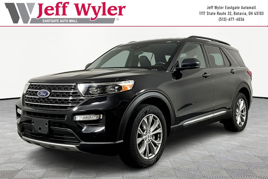 Jeff Wyler Eastgate Auto Mall is excited to offer this fantastic-looking 2020 Ford Explorer XLT in Black. Well equipped with: Comfort Package (1st & 2nd Row Heated Seats and Heated Steering Wheel), Equipment Group 202A (ActiveX Captain's Chairs, LED Fog Lamps, and Remote Start System), Ford Co-Pilot360 Assist+ (Evasive Steering Assist, Intelligent Adaptive Cruise Control, and Voice-Activated Touchscreen Navigation System), 20" Premium Painted Aluminum Wheels, 3.58 Non-Limited-Slip Rear Axle Ratio, 3rd row seats: bench, 4-Wheel Disc Brakes, 6 Speakers, ABS brakes, Air Conditioning, Alloy wheels, AM/FM radio: SiriusXM, AM/FM Stereo, Auto High-beam Headlights, Automatic temperature control, Brake assist, Bumpers: body-color, Compass, Delay-off headlights, Driver door bin, Driver vanity mirror, Dual front impact airbags, Dual front side impact airbags, Electronic Stability Control, Emergency communication system: SYNC 3 911 Assist, Exterior Parking Camera Rear, FordPass Connect, Four wheel independent suspension, Front anti-roll bar, Front Bucket Seats, Front Center Armrest, Front dual zone A/C, Front reading lights, Fully automatic headlights, Heated door mirrors, Illuminated entry, Knee airbag, Leather steering wheel, Low tire pressure warning, Occupant sensing airbag, Outside temperature display, Overhead airbag, Overhead console, Panic alarm, Passenger door bin, Passenger vanity mirror, Power door mirrors, Power driver seat, Power Liftgate, Power passenger seat, Power steering, Power windows, Rear air conditioning, Rear anti-roll bar, Rear reading lights, Rear window defroster, Rear window wiper, Remote keyless entry, Roof rack: rails only, Security system, Speed control, Speed-sensing steering, Speed-Sensitive Wipers, Split folding rear seat, Spoiler, Steering wheel mounted audio controls, SYNC 3 Communications & Entertainment System, SYNC 3/Apple CarPlay/Android Auto, Tachometer, Telescoping steering wheel, Tilt steering wheel, Traction control, Trip computer, Unique Cloth Captain's Chairs, Variably intermittent wipers, and Wheels: 18" 5-Spoke Sparkle Silver-Painted Alum. Awards: * 2020 KBB.com 10 Favorite New-for-2020 Cars * 2020 KBB.com 10 Best SUVs Worth Waiting For Ask about available certifications. Used vehicles 10 years of age or newer with less than 100,000 miles are eligible for the Wyler Assurance Program, but eligible vehicles must pass our reconditioning process and multi-point inspection. Provided the vehicle passes inspection, vehicles will be eligible for the 6 month/6,000 mile limited warranty. The 6 month/6,000 mile limited warranty is NOT available on AS-IS vehicles, wholesale vehicles, lease buyback/pass-thru vehicles or un-inspected vehicles. Note that this program can also apply to vehicles where the remaining factory coverage is less than 6 months or 6,000 miles. Please check the Federal Trade Commission (FTC) Buyers guide on the vehicle for full details as to whether or not warranty coverage may apply. Contact Dealer for additional details. The Wyler Assurance 6 month/6,000 Mile limited warranty ends 6 months from the date of the Retail Purchase Agreement (BUYERS ORDER) or when the vehicle's odometer registers 6,000 additional miles to the mileage listed on the BUYERS ORDER, whichever comes first. Your Deductible - The warranty holder on your contract pays the first $100 of each covered repair.