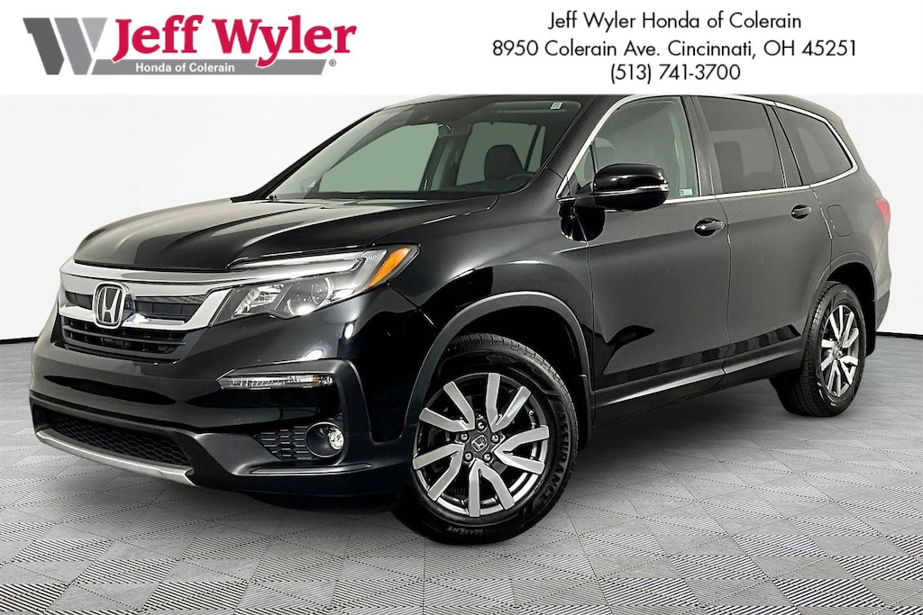 Jeff Wyler Honda of Colerain is proud to offer this great 2022 Honda Pilot EX-L in Crystal Black Pearl. Well equipped with: 18" Machine-Finished Alloy Wheels, 3rd row seats: split-bench, 4-Wheel Disc Brakes, 4.33 Axle Ratio, 7 Speakers, A/V remote: CabinControl, ABS brakes, Air Conditioning, Alloy wheels, AM/FM radio: SiriusXM, Apple CarPlay/Android Auto, Auto High-beam Headlights, Auto-dimming Rear-View mirror, Automatic temperature control, Blind Spot Information (BSI) System warning, Brake assist, Bumpers: body-color, Delay-off headlights, Driver door bin, Driver vanity mirror, Dual front impact airbags, Dual front side impact airbags, Electronic Stability Control, Emergency communication system: HondaLink Assist, Exterior Parking Camera Rear, Forward collision: Collision Mitigation Braking System (CMBS) + FCW mitigation, Four wheel independent suspension, Front anti-roll bar, Front Bucket Seats, Front Center Armrest, Front dual zone A/C, Front fog lights, Front reading lights, Fully automatic headlights, Garage door transmitter: HomeLink, Heated door mirrors, Heated Front Bucket Seats, Heated front seats, Illuminated entry, Lane departure: Lane Keeping Assist System (LKAS) active, Leather Seat Trim, Low tire pressure warning, Memory seat, Occupant sensing airbag, Outside temperature display, Overhead airbag, Overhead console, Panic alarm, Passenger door bin, Passenger vanity mirror, Power door mirrors, Power driver seat, Power Liftgate, Power moonroof, Power passenger seat, Power steering, Power windows, Radio data system, Radio: 215-Watt Audio System, Rear air conditioning, Rear anti-roll bar, Rear reading lights, Rear seat center armrest, Rear window defroster, Rear window wiper, Reclining 3rd row seat, Remote keyless entry, Security system, Speed control, Speed-sensing steering, Speed-Sensitive Wipers, Split folding rear seat, Spoiler, Steering wheel mounted audio controls, Tachometer, Telescoping steering wheel, Tilt steering wheel, Traction control, Trip computer, Turn signal indicator mirrors, and Variably intermittent wipers.