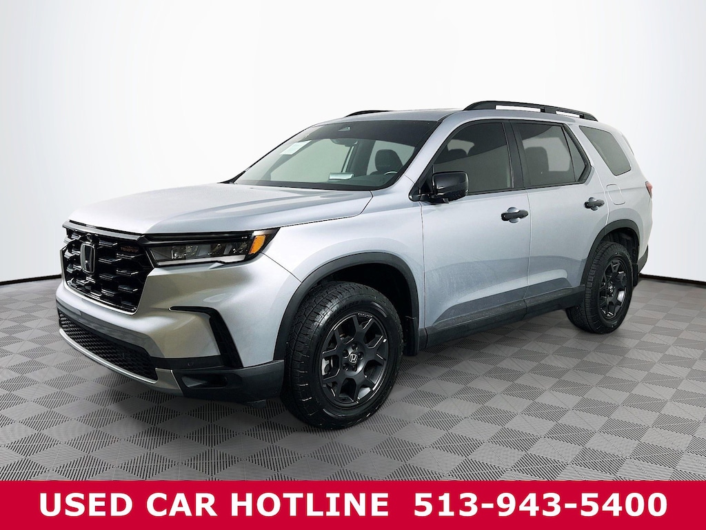 Jeff Wyler Eastgate Auto Mall is excited to offer this good-looking 2025 Honda Pilot TrailSport in Lunar Silver Metallic. Well equipped with: 3rd row seats: split-bench, 4-Wheel Disc Brakes, 4.167 Axle Ratio, 9 Speakers, ABS brakes, Adaptive Cruise Control: Adaptive Cruise Control (ACC) with Low-Speed Follow, Air Conditioning, Alloy wheels, AM/FM radio: SiriusXM, Apple CarPlay/Android Auto, Auto High-beam Headlights, Auto-dimming Rear-View mirror, Automatic temperature control, Blind Spot Information (BSI) System warning, Brake assist, Bumpers: body-color, Delay-off headlights, Driver door bin, Driver vanity mirror, Dual front impact airbags, Dual front side impact airbags, Durable Synthetic Leather Seat Trim, Electronic Stability Control, Emergency communication system: HondaLink Assist, Exterior Parking Camera Rear, Four wheel independent suspension, Front anti-roll bar, Front Bucket Seats, Front Center Armrest, Front dual zone A/C, Front fog lights, Front reading lights, Fully automatic headlights, Garage door transmitter: HomeLink, Heated door mirrors, Heated Front Bucket Seats, Heated front seats, Illuminated entry, Knee airbag, Lane departure: Lane Keeping Assist System (LKAS) active, Low tire pressure warning, Memory seat, Occupant sensing airbag, Outside temperature display, Overhead airbag, Overhead console, Panic alarm, Passenger door bin, Passenger vanity mirror, Power door mirrors, Power driver seat, Power Liftgate, Power moonroof, Power passenger seat, Power steering, Power windows, Radio data system, Radio: 245-Watt Audio System, Rear air conditioning, Rear anti-roll bar, Rear reading lights, Rear window defroster, Rear window wiper, Reclining 3rd row seat, Remote keyless entry, Security system, SiriusXM, Speed control, Speed-sensing steering, Speed-Sensitive Wipers, Split folding rear seat, Spoiler, Steering wheel mounted audio controls, Tachometer, Telescoping steering wheel, Tilt steering wheel, Traction control, Trip computer, Turn signal indicator mirrors, Variably intermittent wipers, and Wheels: 18" Shark Gray with Black Lug Nuts. CARFAX One-Owner. Ask about available certifications. Used vehicles 10 years of age or newer with less than 100,000 miles are eligible for the Wyler Assurance Program, but eligible vehicles must pass our reconditioning process and multi-point inspection. Provided the vehicle passes inspection, vehicles will be eligible for the 6 month/6,000 mile limited warranty. The 6 month/6,000 mile limited warranty is NOT available on AS-IS vehicles, wholesale vehicles, lease buyback/pass-thru vehicles or un-inspected vehicles. Note that this program can also apply to vehicles where the remaining factory coverage is less than 6 months or 6,000 miles. Please check the Federal Trade Commission (FTC) Buyers guide on the vehicle for full details as to whether or not warranty coverage may apply. Contact Dealer for additional details. The Wyler Assurance 6 month/6,000 Mile limited warranty ends 6 months from the date of the Retail Purchase Agreement (BUYERS ORDER) or when the vehicle's odometer registers 6,000 additional miles to the mileage listed on the BUYERS ORDER, whichever comes first. Your Deductible - The warranty holder on your contract pays the first $100 of each covered repair.