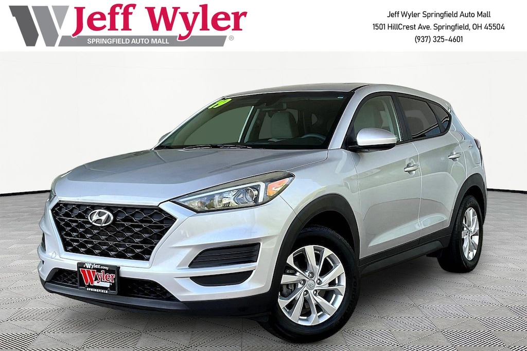 Jeff Wyler Springfield Auto Mall is pumped up to offer this great-looking 2019 Hyundai Tucson SE in Molten Silver. Well equipped with: Option Group 01, 17" x 7.0J Alloy Wheels, 4-Wheel Disc Brakes, 6 Speakers, ABS brakes, Air Conditioning, Alloy wheels, AM/FM radio, Apple CarPlay & Android Auto, Axle Ratio: 3.510, Brake assist, Bumpers: body-color, Delay-off headlights, Driver door bin, Driver vanity mirror, Dual front impact airbags, Dual front side impact airbags, Electronic Stability Control, Exterior Parking Camera Rear, Four wheel independent suspension, Front anti-roll bar, Front Bucket Seats, Front Center Armrest, Front reading lights, Fully automatic headlights, Illuminated entry, Low tire pressure warning, Occupant sensing airbag, Outside temperature display, Overhead airbag, Overhead console, Panic alarm, Passenger door bin, Passenger vanity mirror, Power door mirrors, Power steering, Power windows, Radio: AM/FM Audio System, Rear anti-roll bar, Rear seat center armrest, Rear window defroster, Rear window wiper, Remote keyless entry, Security system, Speed control, Speed-sensing steering, Split folding rear seat, Spoiler, Steering wheel mounted audio controls, Tachometer, Telescoping steering wheel, Tilt steering wheel, Traction control, Trip computer, Variably intermittent wipers, and YES Essentials Cloth Seat Trim. Ask about available certifications. Used vehicles 10 years of age or newer with less than 100,000 miles are eligible for the Wyler Assurance Program, but eligible vehicles must pass our reconditioning process and multi-point inspection. Provided the vehicle passes inspection, vehicles will be eligible for the 6 month/6,000 mile limited warranty. The 6 month/6,000 mile limited warranty is NOT available on AS-IS vehicles, wholesale vehicles, lease buyback/pass-thru vehicles or un-inspected vehicles. Note that this program can also apply to vehicles where the remaining factory coverage is less than 6 months or 6,000 miles. Please check the Federal Trade Commission (FTC) Buyers guide on the vehicle for full details as to whether or not warranty coverage may apply. Contact Dealer for additional details. The Wyler Assurance 6 month/6,000 Mile limited warranty ends 6 months from the date of the Retail Purchase Agreement (BUYERS ORDER) or when the vehicle's odometer registers 6,000 additional miles to the mileage listed on the BUYERS ORDER, whichever comes first. Your Deductible - The warranty holder on your contract pays the first $100 of each covered repair.