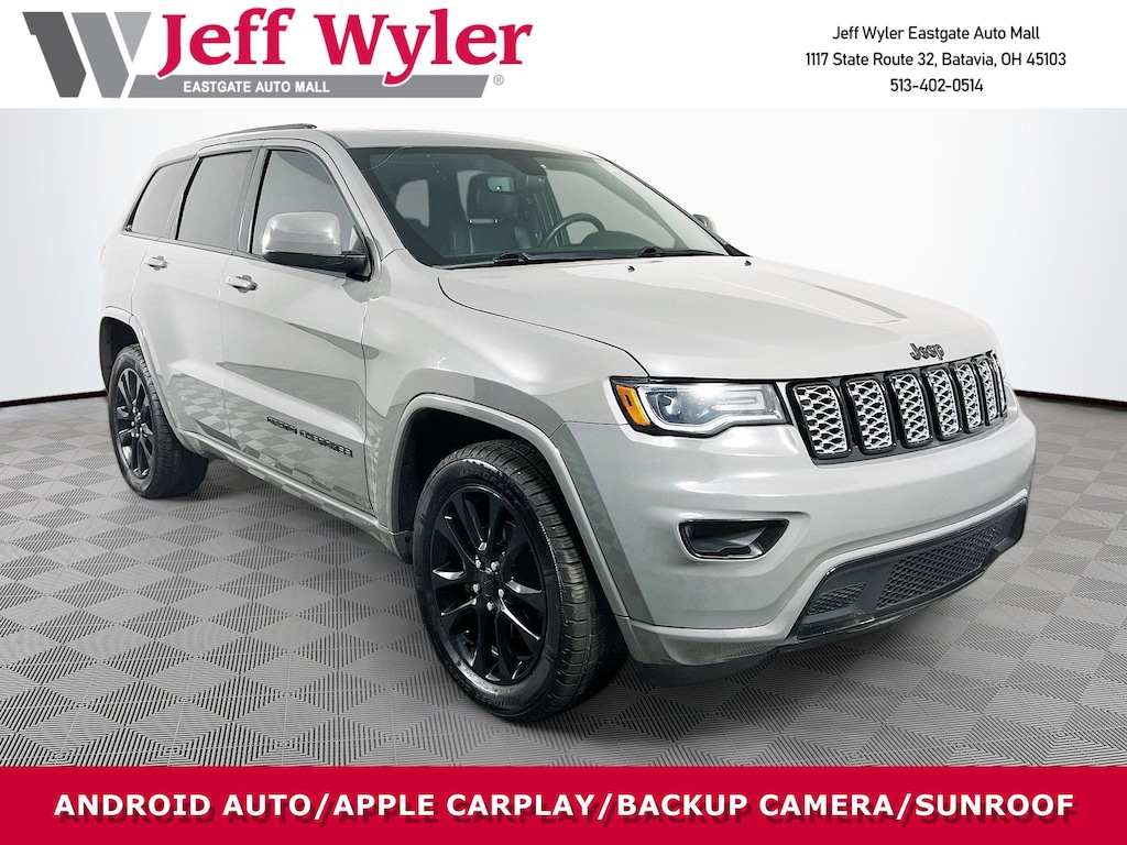 Jeff Wyler Eastgate Auto Mall is very proud to offer this terrific-looking 2020 Jeep Grand Cherokee Altitude in Sting-Gray Clearcoat. Well equipped with: Premium Lighting Group (Auto High Beam Headlamp Control, Bi-Xenon High-Intensity Discharge Headlamps, Front LED Fog Lamps, and LED Daytime Running Headlamps), Quick Order Package 2BZ Altitude (1-Year SiriusXM Guardian Trial, 4G LTE Wi-Fi Hot Spot, 5-Year SiriusXM Traffic Service, 5-Year SiriusXM Travel Link Service, 8.4" Touchscreen Display, Apple CarPlay, Auto-Dimming Rear-View Mirror, Body Color Shark Fin Antenna, Dark Lens Taillamps, Disassociated Touchscreen Display, For Details Visit DriveUconnect.com, Gloss Black Rear Fascia Applique, Google Android Auto, GPS Antenna Input, GPS Navigation, HD Radio, Instrument Cluster w/Off-Road Disp. Pages, Integrated Center Stack Radio, Integrated Voice Command w/Bluetooth, Jeep Black Gloss Badging, Power 4-Way Driver Lumbar Adjust, Power 8-Way Driver/Manual Passenger Seat, Radio: Uconnect 4C Nav w/8.4" Display, Rear Fascia Black MIC Step Pad, SiriusXM Satellite Radio, SiriusXM Traffic Plus, SiriusXM Travel Link, Steering Wheel Mounted Audio Controls, USB Host Flip, and Wheels: 20" x 8.0" Gloss Black Aluminum), Security & Convenience Group (115V Auxiliary Power Outlet, Security Alarm, and Universal Garage Door Opener), 3.45 Rear Axle Ratio, 4-Wheel Disc Brakes, 6 Speakers, ABS brakes, Air Conditioning, Alloy wheels, AM/FM radio, Anti-whiplash front head restraints, Apple CarPlay/Android Auto, Automatic temperature control, Brake assist, Bumpers: body-color, Cloth Bucket Seats, Compass, Delay-off headlights, Driver door bin, Driver vanity mirror, Dual front impact airbags, Dual front side impact airbags, Electronic Stability Control, Four wheel independent suspension, Front anti-roll bar, Front Bucket Seats, Front Center Armrest w/Storage, Front dual zone A/C, Front fog lights, Front reading lights, Fully automatic headlights, Heated door mirrors, Illuminated entry, Knee airbag, Leather Shift Knob, Low tire pressure warning, Normal Duty Suspension, Occupant sensing airbag, Outside temperature display, Overhead airbag, Overhead console, Panic alarm, ParkView Rear Back-Up Camera, Passenger door bin, Passenger vanity mirror, Power door mirrors, Power steering, Power Sunroof, Power windows, Radio data system, Rear anti-roll bar, Rear reading lights, Rear seat center armrest, Rear window defroster, Rear window wiper, Remote keyless entry, Speed control, Speed-sensing steering, Speed-Sensitive Wipers, Split folding rear seat, Spoiler, Steering wheel mounted audio controls, Tachometer, Telescoping steering wheel, Tilt steering wheel, Traction control, Trip computer, Variably intermittent wipers, and Wheels: 17" x 8.0" Silver AluminuM. CARFAX One-Owner. Ask about available certifications. Used vehicles 10 years of age or newer with less than 100,000 miles are eligible for the Wyler Assurance Program, but eligible vehicles must pass our reconditioning process and multi-point inspection. Provided the vehicle passes inspection, vehicles will be eligible for the 6 month/6,000 mile limited warranty. The 6 month/6,000 mile limited warranty is NOT available on AS-IS vehicles, wholesale vehicles, lease buyback/pass-thru vehicles or un-inspected vehicles. Note that this program can also apply to vehicles where the remaining factory coverage is less than 6 months or 6,000 miles. Please check the Federal Trade Commission (FTC) Buyers guide on the vehicle for full details as to whether or not warranty coverage may apply. Contact Dealer for additional details. The Wyler Assurance 6 month/6,000 Mile limited warranty ends 6 months from the date of the Retail Purchase Agreement (BUYERS ORDER) or when the vehicle's odometer registers 6,000 additional miles to the mileage listed on the BUYERS ORDER, whichever comes first. Your Deductible - The warranty holder on your contract pays the first $100 of each covered repair.