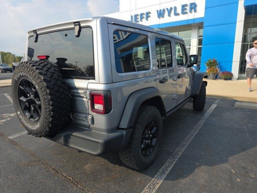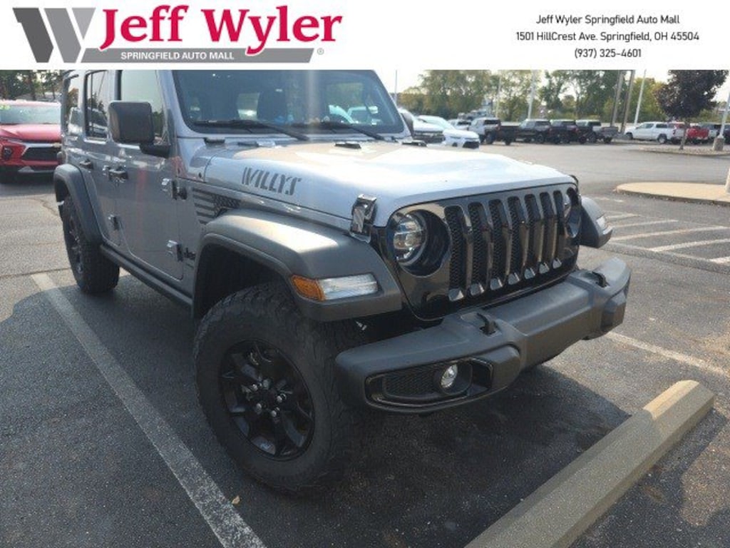 Jeff Wyler Springfield Auto Mall is excited to offer this outstanding-looking 2021 Jeep Wrangler Unlimited Willys in Billet Silver Metallic Clearcoat. Well equipped with: 8.4" Radio & Premium Audio Group (Alpine Premium Audio System, Auto-Dimming Rear-View Mirror, and Emergency/Assistance Call), Cold Weather Group (Heated Front Seats and Heated Steering Wheel), Convenience Group (Universal Garage Door Opener), LED Headlamp & Fog Lamp Group (Front LED Fog Lamps and LED Premium Reflector Headlamps), Quick Order Package 22W Willys (4-Wheel Drive Swing Gate Decal, Anti-Spin Differential Rear Axle, Automatic Headlamps, Black Grille, Black Trail Rated Badge, Deep Tint Sunscreen Windows, Front 1-Touch Down Power Windows, Leather Wrapped Steering Wheel, Matte Black Jeep Badge, Mold In Color Bumper w/Gloss Black, Power Heated Mirrors, Remote Keyless Entry, Security Alarm, Speed Sensitive Power Locks, Sun Visors w/Illuminated Vanity Mirrors, Wheels: 17" x 7.5" Moab Black Aluminum, Willys, Willys Hood Decal, and Wrangler Decal), Sun and Sound Package (115V Auxiliary Power Outlet, Console Bin Task Light, Media Hub-2 USBS (Both Charge Only), Power Top Quarter Window Storage Bag, Rear Window Defroster, Rear Window Wiper/Washer, Remote USB Port - Charge Only, Removable Rear Quarter Windows, and Sky 1-Touch Power Top), Technology Group (7.0" Touchscreen Display, Air Conditioning w/Auto Temperature Control, Air Filtering, Apple CarPlay, Cluster 7.0" TFT Color Display, For More Info, Call 800-643-2112, Google Android Auto, GPS Antenna Input, Integrated Center Stack Radio, Radio: Uconnect 4 w/7" Display, SiriusXM Radio Service, SiriusXM Satellite Radio, and USB Host Flip), 3.45 Rear Axle Ratio, 4-Wheel Disc Brakes, 8 Speakers, ABS brakes, Air Conditioning, AM/FM radio, Aux Battery, Brake assist, Cloth Low-Back Bucket Seats, Compass, Delay-off headlights, Driver door bin, Driver vanity mirror, Dual front impact airbags, Dual front side impact airbags, Electronic Stability Control, Front anti-roll bar, Front Bucket Seats, Front Center Armrest w/Storage, Front fog lights, Front reading lights, Integrated roll-over protection, Low tire pressure warning, MOPAR All-Weather Floor Mats (DISC), Non-Lock Fuel Cap w/o Discriminator, Normal Duty Suspension, Occupant sensing airbag, Outside temperature display, ParkView Rear Back-Up Camera, Passenger door bin, Passenger vanity mirror, Power steering, Radio data system, Radio: Uconnect 3 w/5" Display, Radio: Uconnect 4C Nav w/8.4" Display (DISC), Rear anti-roll bar, Rear reading lights, Speed control, Split folding rear seat, Steering wheel mounted audio controls, Stop-Start Dual Battery System, Tachometer, Telescoping steering wheel, Tilt steering wheel, Traction control, Trip computer, Variably intermittent wipers, and Wheels: 17" x 7.5" Black Steel Styled. Ask about available certifications. Used vehicles 10 years of age or newer with less than 100,000 miles are eligible for the Wyler Assurance Program, but eligible vehicles must pass our reconditioning process and multi-point inspection. Provided the vehicle passes inspection, vehicles will be eligible for the 6 month/6,000 mile limited warranty. The 6 month/6,000 mile limited warranty is NOT available on AS-IS vehicles, wholesale vehicles, lease buyback/pass-thru vehicles or un-inspected vehicles. Note that this program can also apply to vehicles where the remaining factory coverage is less than 6 months or 6,000 miles. Please check the Federal Trade Commission (FTC) Buyers guide on the vehicle for full details as to whether or not warranty coverage may apply. Contact Dealer for additional details. The Wyler Assurance 6 month/6,000 Mile limited warranty ends 6 months from the date of the Retail Purchase Agreement (BUYERS ORDER) or when the vehicle's odometer registers 6,000 additional miles to the mileage listed on the BUYERS ORDER, whichever comes first. Your Deductible - The warranty holder on your contract pays the first $100 of each covered repair.