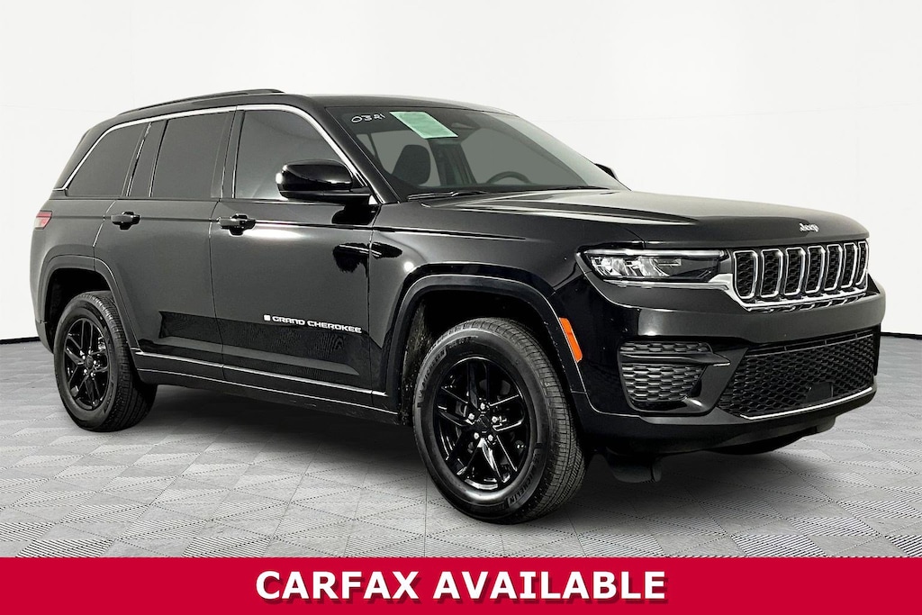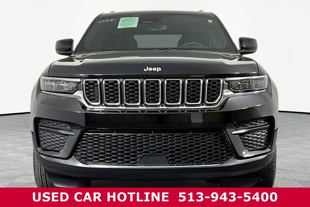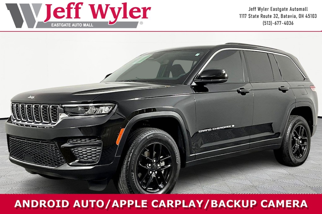 Jeff Wyler Eastgate Auto Mall is very proud to offer this charming 2024 Jeep Grand Cherokee Laredo in Diamond Black Crystal Pearlcoat. Well equipped with: Quick Order Package 23D Laredo X (Laredo X, Power Sunroof, and Wheels: 18" x 8" Fully Painted Aluminum), 3.45 Rear Axle Ratio, 4-Wheel Disc Brakes, 6 Speakers, ABS brakes, Air Conditioning, Alloy wheels, Anti-whiplash front head restraints, Automatic temperature control, Brake assist, Bumpers: body-color, Cloth Seats, Compass, Delay-off headlights, Driver door bin, Driver vanity mirror, Dual front impact airbags, Dual front side impact airbags, Electronic Stability Control, Emergency communication system, Four wheel independent suspension, Front anti-roll bar, Front Bucket Seats, Front Center Armrest w/Storage, Front dual zone A/C, Front License Plate Bracket, Front reading lights, Fully automatic headlights, Heated door mirrors, Illuminated entry, Knee airbag, Low tire pressure warning, Normal Duty Suspension, Occupant sensing airbag, Outside temperature display, Overhead airbag, Overhead console, Panic alarm, ParkView Rear Back-Up Camera, Passenger door bin, Passenger vanity mirror, Power door mirrors, Power driver seat, Power steering, Power windows, Radio data system, Radio: Uconnect 5 w/8.4" Display, Rear anti-roll bar, Rear reading lights, Rear window defroster, Rear window wiper, Remote keyless entry, Security system, Speed control, Speed-Sensitive Wipers, Split folding rear seat, Spoiler, Steering wheel mounted audio controls, Tachometer, Telescoping steering wheel, Tilt steering wheel, Traction control, Trip computer, Variably intermittent wipers, Voltmeter, and Wheels: 17" x 6.5" Fully Painted Aluminum. CARFAX One-Owner. Clean CARFAX. Ask about available certifications. Used vehicles 10 years of age or newer with less than 100,000 miles are eligible for the Wyler Assurance Program, but eligible vehicles must pass our reconditioning process and multi-point inspection. Provided the vehicle passes inspection, vehicles will be eligible for the 6 month/6,000 mile limited warranty. The 6 month/6,000 mile limited warranty is NOT available on AS-IS vehicles, wholesale vehicles, lease buyback/pass-thru vehicles or un-inspected vehicles. Note that this program can also apply to vehicles where the remaining factory coverage is less than 6 months or 6,000 miles. Please check the Federal Trade Commission (FTC) Buyers guide on the vehicle for full details as to whether or not warranty coverage may apply. Contact Dealer for additional details. The Wyler Assurance 6 month/6,000 Mile limited warranty ends 6 months from the date of the Retail Purchase Agreement (BUYERS ORDER) or when the vehicle's odometer registers 6,000 additional miles to the mileage listed on the BUYERS ORDER, whichever comes first. Your Deductible - The warranty holder on your contract pays the first $100 of each covered repair.