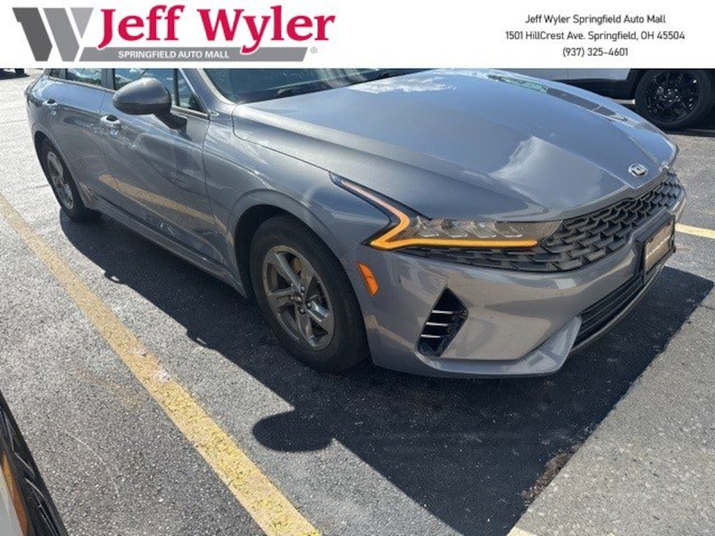 Jeff Wyler Springfield Auto Mall is excited to offer this good-looking 2021 Kia K5 LXS in Everlasting Silver. Well equipped with: 4-Wheel Disc Brakes, 6 Speakers, ABS brakes, Air Conditioning, Alloy wheels, AM/FM radio, Apple CarPlay & Android Auto, Auto High-beam Headlights, Automatic temperature control, Brake assist, Bumpers: body-color, Carpeted Floor Mats, Cloth Seat Trim, Delay-off headlights, Driver door bin, Driver vanity mirror, Dual front impact airbags, Dual front side impact airbags, Electronic Stability Control, Four wheel independent suspension, Front anti-roll bar, Front Bucket Seats, Front Center Armrest, Front dual zone A/C, Front reading lights, Fully automatic headlights, Heated door mirrors, Illuminated entry, Knee airbag, Low tire pressure warning, Occupant sensing airbag, Outside temperature display, Overhead airbag, Overhead console, Panic alarm, Passenger door bin, Passenger vanity mirror, Power door mirrors, Power steering, Power windows, Radio data system, Radio: AM/FM/MP3 Audio System, Rear anti-roll bar, Rear seat center armrest, Rear side impact airbag, Rear window defroster, Remote keyless entry, Security system, Speed control, Speed-sensing steering, Split folding rear seat, Steering wheel mounted audio controls, Tachometer, Telescoping steering wheel, Tilt steering wheel, Traction control, Trip computer, Variably intermittent wipers, and Wheels: 6.5J x 16" Machined Finish Alloy. Awards: * JD Power Automotive Performance, Execution and Layout (APEAL) Study Ask about available certifications. Used vehicles 10 years of age or newer with less than 100,000 miles are eligible for the Wyler Assurance Program, but eligible vehicles must pass our reconditioning process and multi-point inspection. Provided the vehicle passes inspection, vehicles will be eligible for the 6 month/6,000 mile limited warranty. The 6 month/6,000 mile limited warranty is NOT available on AS-IS vehicles, wholesale vehicles, lease buyback/pass-thru vehicles or un-inspected vehicles. Note that this program can also apply to vehicles where the remaining factory coverage is less than 6 months or 6,000 miles. Please check the Federal Trade Commission (FTC) Buyers guide on the vehicle for full details as to whether or not warranty coverage may apply. Contact Dealer for additional details. The Wyler Assurance 6 month/6,000 Mile limited warranty ends 6 months from the date of the Retail Purchase Agreement (BUYERS ORDER) or when the vehicle's odometer registers 6,000 additional miles to the mileage listed on the BUYERS ORDER, whichever comes first. Your Deductible - The warranty holder on your contract pays the first $100 of each covered repair.