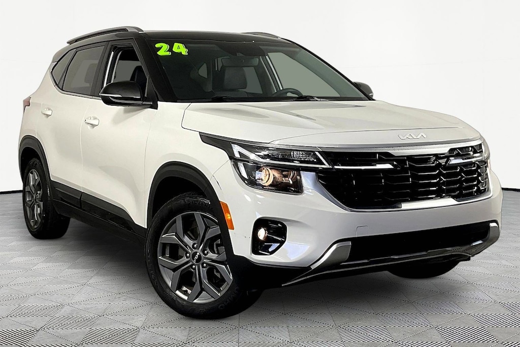 Scores 31 Highway MPG and 27 City MPG! This Kia Seltos boasts a Regular Unleaded I-4 2.0 L/122 engine powering this Variable transmission. ILLUMINATED SCUFF PLATES, GLOSSY BLACK DOOR GARNISH PACKAGE -inc: Glossy Black Door Garnish, CLEAR WHITE/BLACK ROOF.