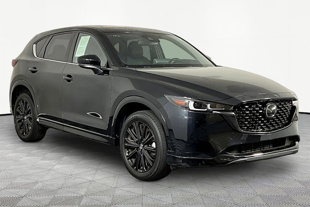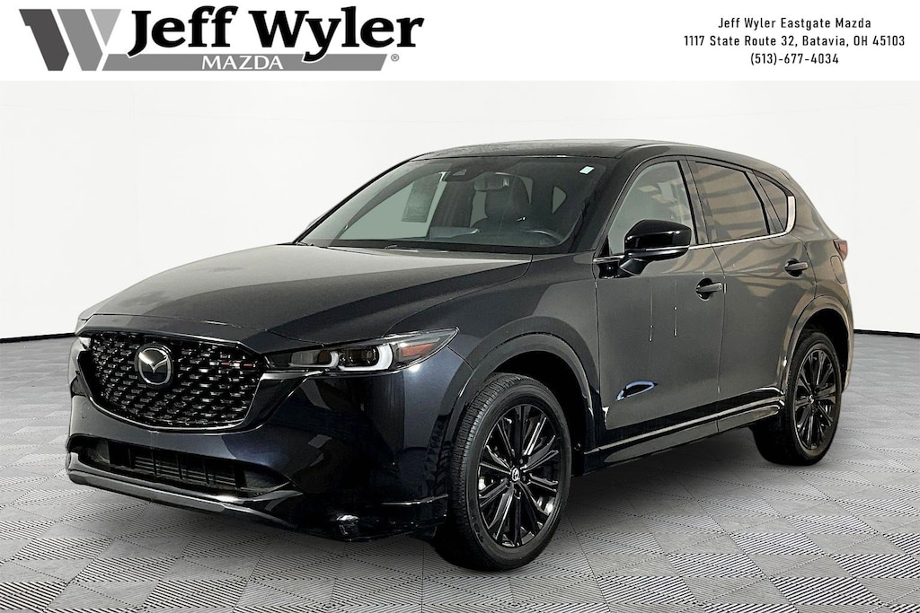 Jeff Wyler Eastgate Auto Mall is honored to offer this terrific-looking 2023 Mazda CX-5 2.5 Turbo in Jet Black Mica. Well equipped with: 10 Speakers, 4-Wheel Disc Brakes, 4.411 Axle Ratio, ABS brakes, Air Conditioning, Alloy wheels, AM/FM radio: SiriusXM, AppLink/Apple CarPlay and Android Auto, Auto High-beam Headlights, Auto-dimming Rear-View mirror, Automatic temperature control, Black Lug Nuts & Black Wheel Locks, Brake assist, Bumpers: body-color, Cargo Mat, Delay-off headlights, Driver door bin, Driver vanity mirror, Dual front impact airbags, Dual front side impact airbags, E911 Automatic Emergency Notification, Electronic Stability Control, Emergency communication system: MAZDA CONNECT, Exterior Parking Camera Rear, Four wheel independent suspension, Front anti-roll bar, Front Bucket Seats, Front Center Armrest w/Storage, Front dual zone A/C, Front reading lights, Fully automatic headlights, Garage door transmitter: HomeLink, Heads-Up Display, Heated door mirrors, Heated front seats, Heated rear seats, Heated steering wheel, Heated/Ventilated Front Bucket Seats, Illuminated entry, Infotainment System Voice Command, Leather Seat Trim, Leather Shift Knob, Low tire pressure warning, Memory seat, Multifunction Commander Control, Occupant sensing airbag, Outside temperature display, Overhead airbag, Overhead console, Pandora, Panic alarm, Passenger door bin, Passenger vanity mirror, Power door mirrors, Power driver seat, Power Liftgate, Power moonroof, Power passenger seat, Power steering, Power windows, Radio Broadcast Data System Program Information, Radio data system, Radio: AM/FM/HD Audio System, Rain sensing wipers, Rear anti-roll bar, Rear reading lights, Rear seat center armrest, Rear window defroster, Rear window wiper, Remote keyless entry, SMS Text Msg Audio Delivery & Reply, Speed control, Speed-sensing steering, Split folding rear seat, Spoiler, Steering wheel mounted audio controls, Tachometer, Telescoping steering wheel, Tilt steering wheel, Traction control, Trip computer, Turn signal indicator mirrors, Variably intermittent wipers, Ventilated front seats, and Wheels: 19" x 7J Aluminum Alloy. CARFAX One-Owner. Clean CARFAX. Ask about available certifications. Used vehicles 10 years of age or newer with less than 100,000 miles are eligible for the Wyler Assurance Program, but eligible vehicles must pass our reconditioning process and multi-point inspection. Provided the vehicle passes inspection, vehicles will be eligible for the 6 month/6,000 mile limited warranty. The 6 month/6,000 mile limited warranty is NOT available on AS-IS vehicles, wholesale vehicles, lease buyback/pass-thru vehicles or un-inspected vehicles. Note that this program can also apply to vehicles where the remaining factory coverage is less than 6 months or 6,000 miles. Please check the Federal Trade Commission (FTC) Buyers guide on the vehicle for full details as to whether or not warranty coverage may apply. Contact Dealer for additional details. The Wyler Assurance 6 month/6,000 Mile limited warranty ends 6 months from the date of the Retail Purchase Agreement (BUYERS ORDER) or when the vehicle's odometer registers 6,000 additional miles to the mileage listed on the BUYERS ORDER, whichever comes first. Your Deductible - The warranty holder on your contract pays the first $100 of each covered repair.