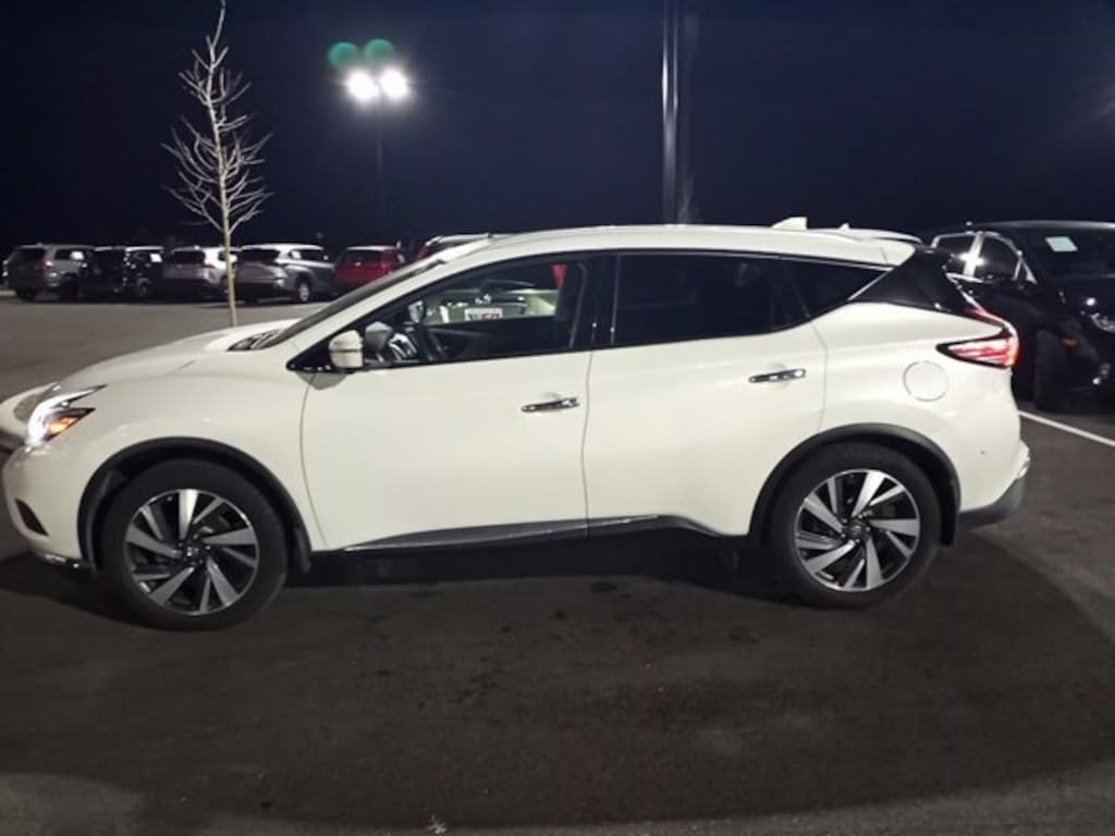 Jeff Wyler Eastgate Auto Mall is excited to offer this good-looking 2017 Nissan Murano Platinum in Pearl White. Well equipped with: Cargo Package (Cargo Area Protector, Cargo Net, and Retractable Cargo Cover), Platinum Technology Package (Intelligent Cruise Control and Predictive Forward Collision Warning (PFCW)), 11 Speakers, 4-Wheel Disc Brakes, 4.677 Axle Ratio, ABS brakes, Air Conditioning, Alloy wheels, AM/FM radio: SiriusXM, Anti-whiplash front head restraints, Auto-dimming Rear-View mirror, Automatic temperature control, Blind Spot Warning, Brake assist, Bumpers: body-color, Carpeted Floor Mats & Cargo Mat, CD player, Compass, Delay-off headlights, Driver door bin, Driver vanity mirror, Dual front impact airbags, Dual front side impact airbags, Electronic Stability Control, Emergency communication system: NissanConnect Services, Four wheel independent suspension, Front anti-roll bar, Front Bucket Seats, Front Center Armrest w/Storage, Front dual zone A/C, Front fog lights, Front reading lights, Fully automatic headlights, Garage door transmitter: HomeLink, Heated & Cooled Front Bucket Seats, Heated door mirrors, Heated front seats, Heated rear seats, Heated steering wheel, Illuminated entry, Knee airbag, Leather Shift Knob, Leather-Appointed Seat Trim, Low tire pressure warning, Memory seat, Navigation System, NissanConnect Services Powered By SiriusXM, Occupant sensing airbag, Outside temperature display, Overhead airbag, Overhead console, Panic alarm, Passenger door bin, Passenger vanity mirror, Power door mirrors, Power driver seat, Power Liftgate, Power passenger seat, Power steering, Power windows, Radio data system, Radio: AM/FM/CD Audio System w/Navigation, Rear anti-roll bar, Rear Bumper Protector, Rear reading lights, Rear seat center armrest, Rear window defroster, Rear window wiper, Remote keyless entry, Roof rack: rails only, Security system, Speed control, Speed-sensing steering, Speed-Sensitive Wipers, Splash Guards, Split folding rear seat, Spoiler, Steering wheel memory, Steering wheel mounted audio controls, Tachometer, Telescoping steering wheel, Tilt steering wheel, Traction control, Trip computer, Turn signal indicator mirrors, Variably intermittent wipers, Ventilated front seats, and Wheels: 20" Machined Aluminum-Alloy. Clean CARFAX. Ask about available certifications. Used vehicles 10 years of age or newer with less than 100,000 miles are eligible for the Wyler Assurance Program, but eligible vehicles must pass our reconditioning process and multi-point inspection. Provided the vehicle passes inspection, vehicles will be eligible for the 6 month/6,000 mile limited warranty. The 6 month/6,000 mile limited warranty is NOT available on AS-IS vehicles, wholesale vehicles, lease buyback/pass-thru vehicles or un-inspected vehicles. Note that this program can also apply to vehicles where the remaining factory coverage is less than 6 months or 6,000 miles. Please check the Federal Trade Commission (FTC) Buyers guide on the vehicle for full details as to whether or not warranty coverage may apply. Contact Dealer for additional details. The Wyler Assurance 6 month/6,000 Mile limited warranty ends 6 months from the date of the Retail Purchase Agreement (BUYERS ORDER) or when the vehicle's odometer registers 6,000 additional miles to the mileage listed on the BUYERS ORDER, whichever comes first. Your Deductible - The warranty holder on your contract pays the first $100 of each covered repair.