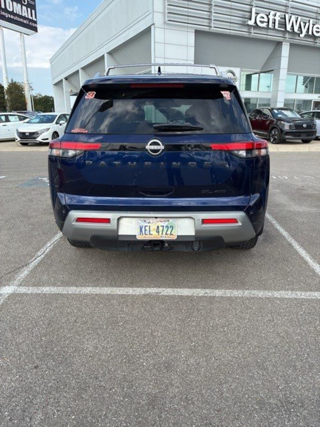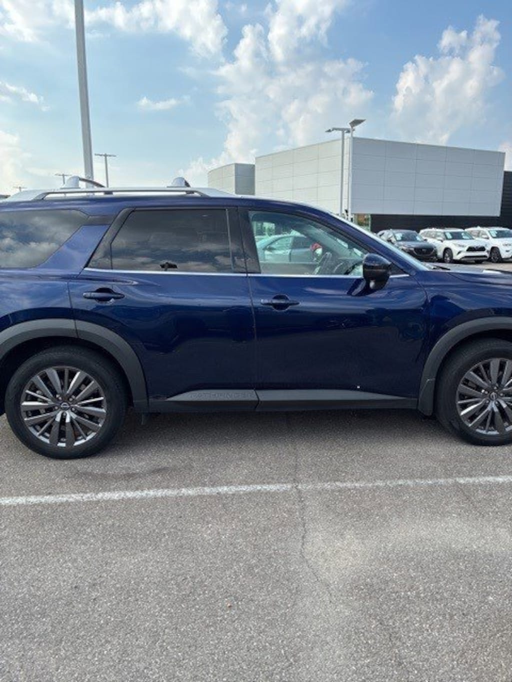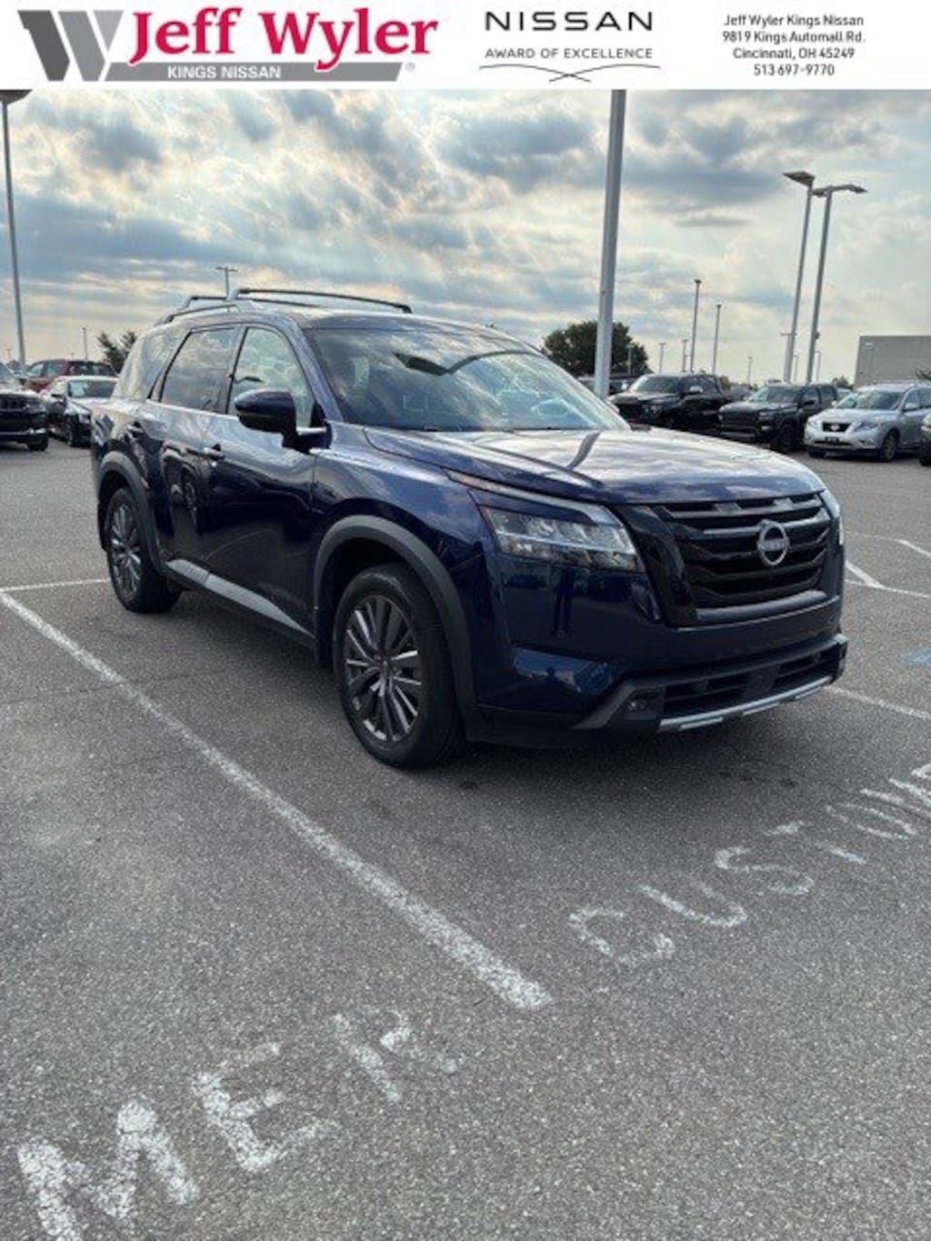 Jeff Wyler Kings Nissan is excited to offer this great 2024 Nissan Pathfinder SL in Deep Ocean Blue Pearl. Well equipped with: Black Appearance Package (Black Grille (K10) and Black Liftgate Emblems), Cargo Package (Cargo Area Protector, Cargo Net, and First Aid Kit), SL Premium Package (20" Painted Alloy Wheels, 2nd-Row Captain Chairs, 2nd-Row Rear Headrest, Bose Premium Audio System, Heated Rear Seats, Panoramic Moonroof, and Tow Hitch Receiver & Harness), 4WD, 3rd row seats: bench, 4-Wheel Disc Brakes, 6 Speakers, ABS brakes, Air Conditioning, Alloy wheels, AM/FM radio: SiriusXM, Auto High-beam Headlights, Auto-dimming Rear-View mirror, Automatic temperature control, Axle Ratio: 4.334, Black Splash Guards (Set of 4), Brake assist, Bumpers: body-color, Captain's Chairs Carpeted Floor Mats (Set of 4), Cross Bars, Delay-off headlights, Driver door bin, Driver vanity mirror, Dual front impact airbags, Dual front side impact airbags, Electronic Stability Control, Emergency communication system, Exterior Parking Camera Rear, Four wheel independent suspension, Front anti-roll bar, Front Bucket Seats, Front Center Armrest, Front dual zone A/C, Front reading lights, Fully automatic headlights, Garage door transmitter: HomeLink, Heated door mirrors, Heated Front Bucket Seats, Heated front seats, Heated steering wheel, Illuminated entry, Knee airbag, Leather steering wheel, Leather-Appointed Seating Surfaces, LED Fog Lamps, Low tire pressure warning, Navigation system: NissanConnect with Navigation and Services, Nissan USB Charging Cable Set, NissanConnect featuring Apple CarPlay and Android Auto, NissanConnect w/Navigation & Services, Occupant sensing airbag, Outside temperature display, Overhead airbag, Overhead console, Panic alarm, Passenger door bin, Passenger vanity mirror, Power door mirrors, Power driver seat, Power Liftgate, Power passenger seat, Power steering, Power windows, Radio data system, Radio: AM/FM Audio System, Rear air conditioning, Rear anti-roll bar, Rear reading lights, Rear seat center armrest, Rear side impact airbag, Rear window defroster, Rear window wiper, Reclining 3rd row seat, Remote keyless entry, Security system, Speed control, Speed-sensing steering, Split folding rear seat, Spoiler, Steering wheel mounted audio controls, Tachometer, Telescoping steering wheel, Tilt steering wheel, Traction control, Trip computer, Turn signal indicator mirrors, Variably intermittent wipers, and Wheels: 18" x 8J Machined Alloy.Ask about available certifications.